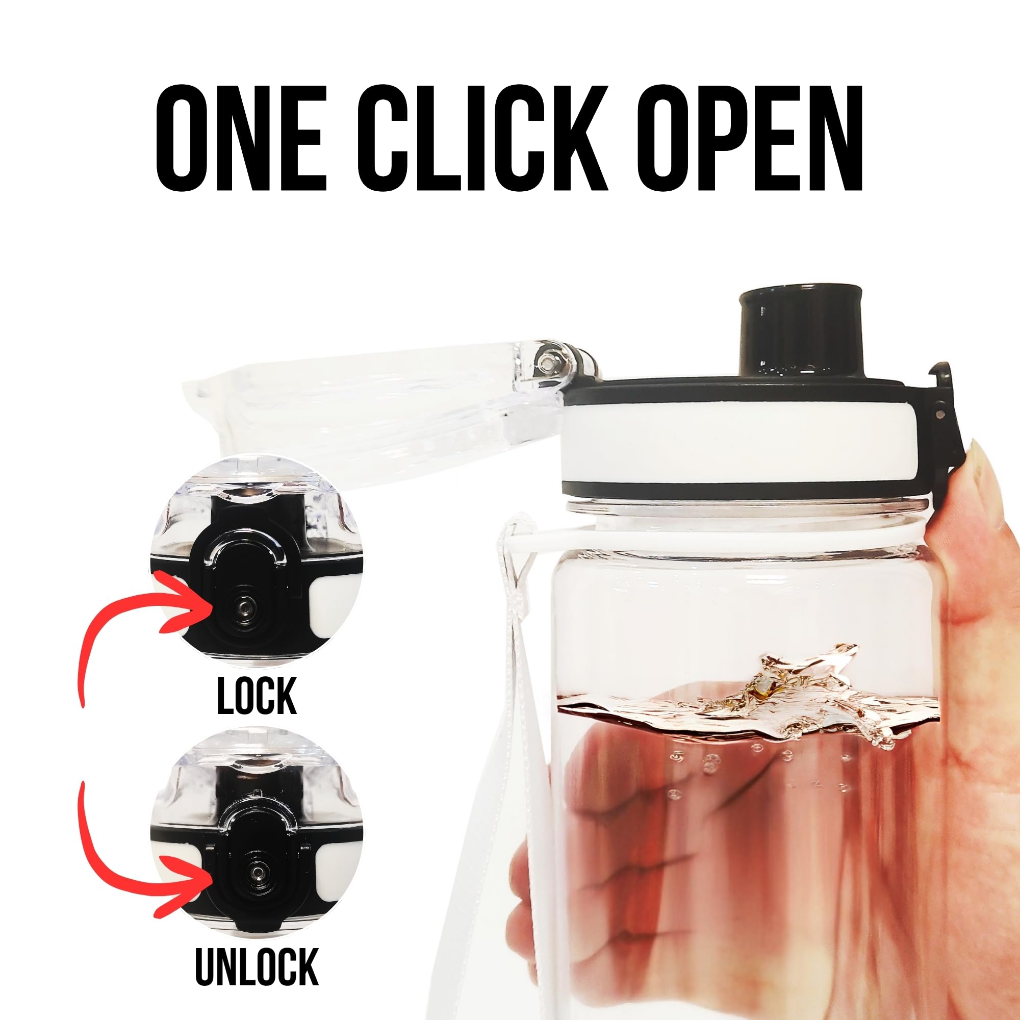 ✔ NO MARKINGS – This drinks bottle is specially designed for use in exams and concerts. Simply open the lock of this simple clear bottle with only one hand and enjoy your drink, making it easier for you to stay hydrated all day long – during indoors, hiking, cycling, sports & gym.