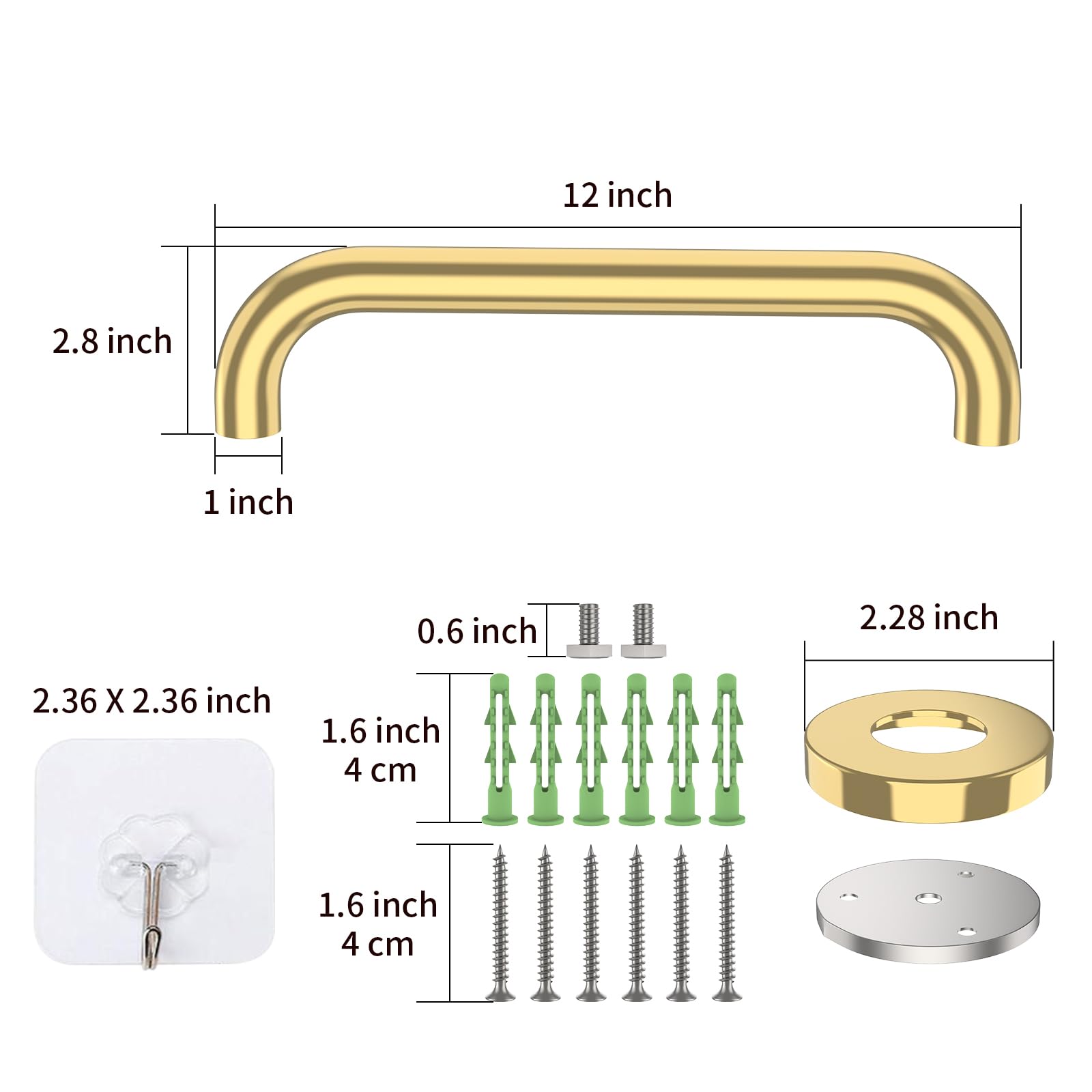 Able to support up to 500 lbs of pull force to provide a stable, reliable handhold; Screw Length 1.6 inch/ 4.0cm. Made of stainless steel for a lasting strength and quality.
