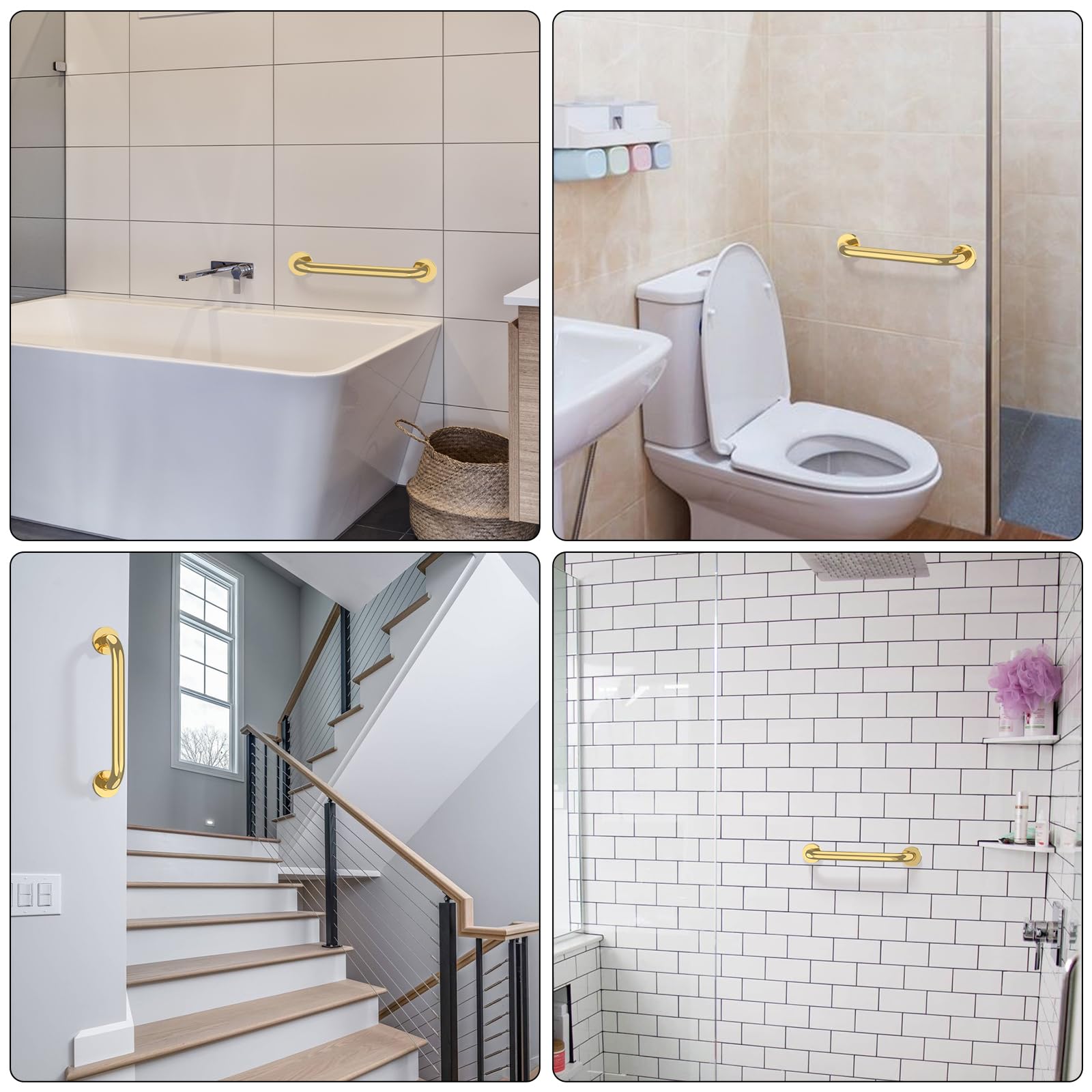 Use safety grab bars in the bathroom, kitchen, along stairways, or in the laundry room for additional fall prevention, especially for the handicap, elderly, pregnant women, injury, and children