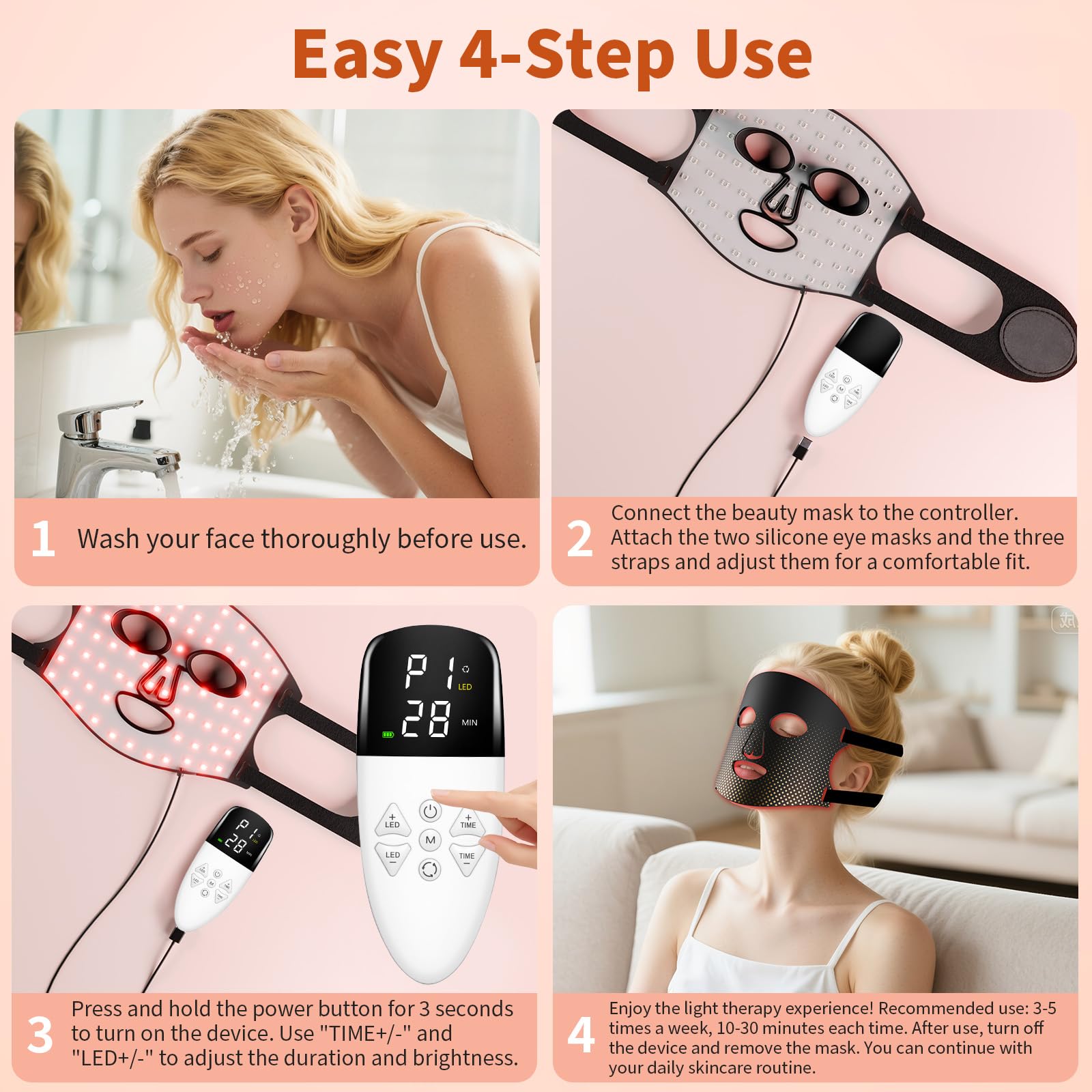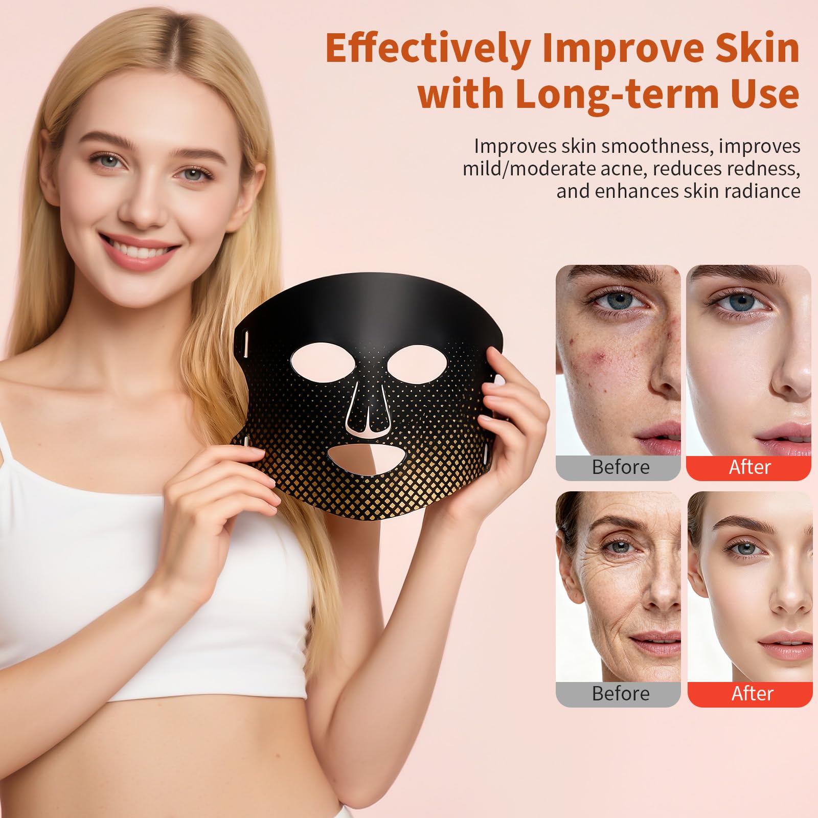 Comfortable & Flexible Design: Made from high-quality silicone, this mask is lightweight, durable, and designed for a customizable fit. The ergonomic shape and adjustable strap ensure even light distribution for an effective, balanced experience.