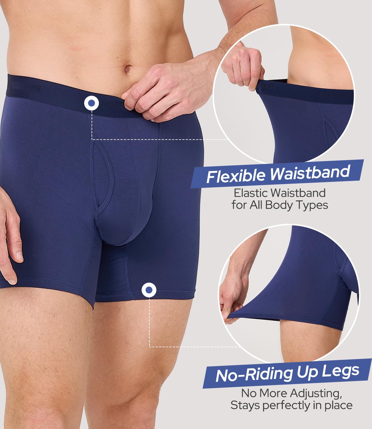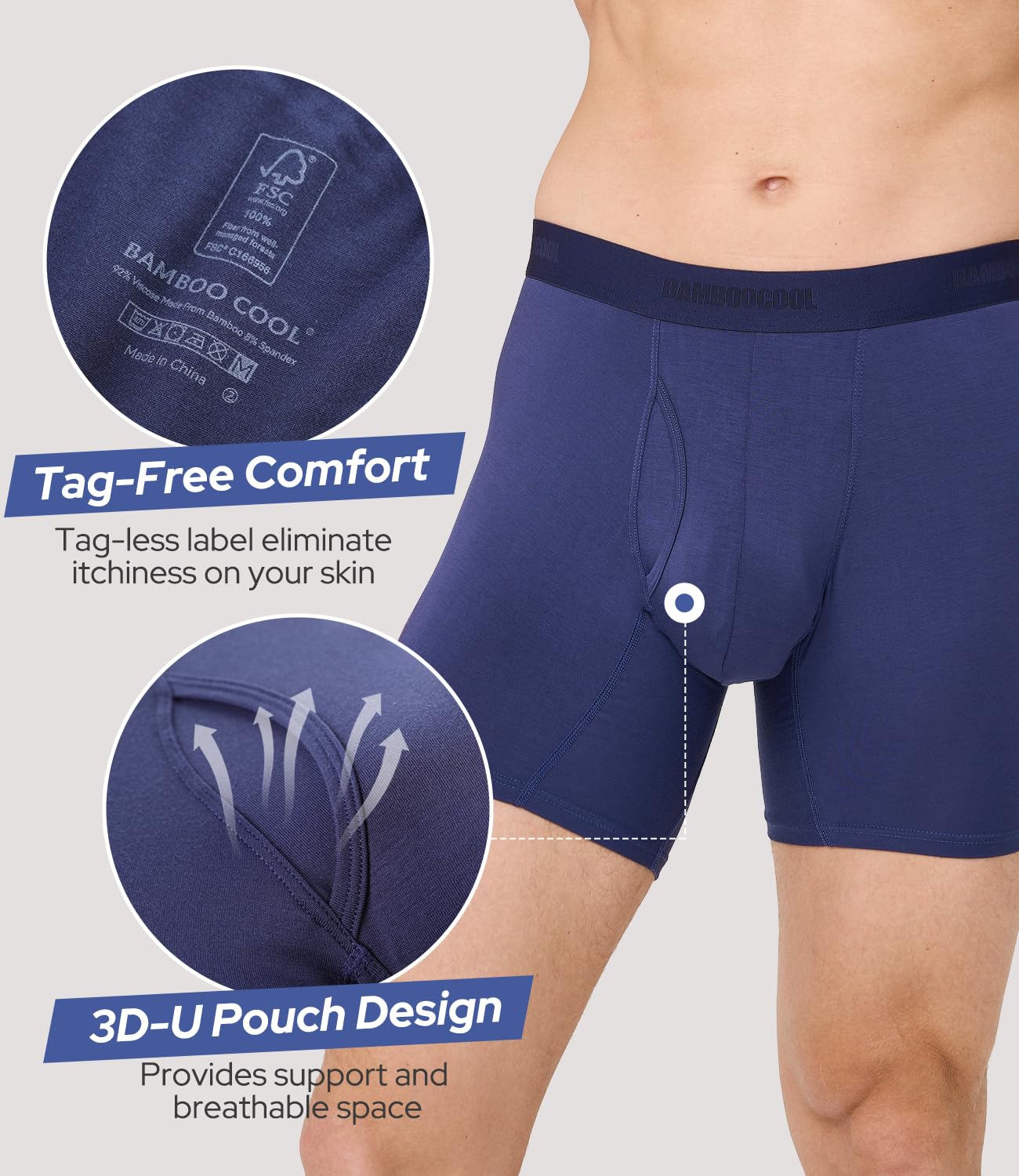 ANTI-RIDE-UP LEGS & TAGLESS DESIGN: Our breathable mens underwear has flat-stitched legs that stay in place, preventing uncomfortable bunching or chafing, avoiding constantly adjusting your underwear. Plus, the tagless label eliminates skin irritation, so you can move freely without distractions.