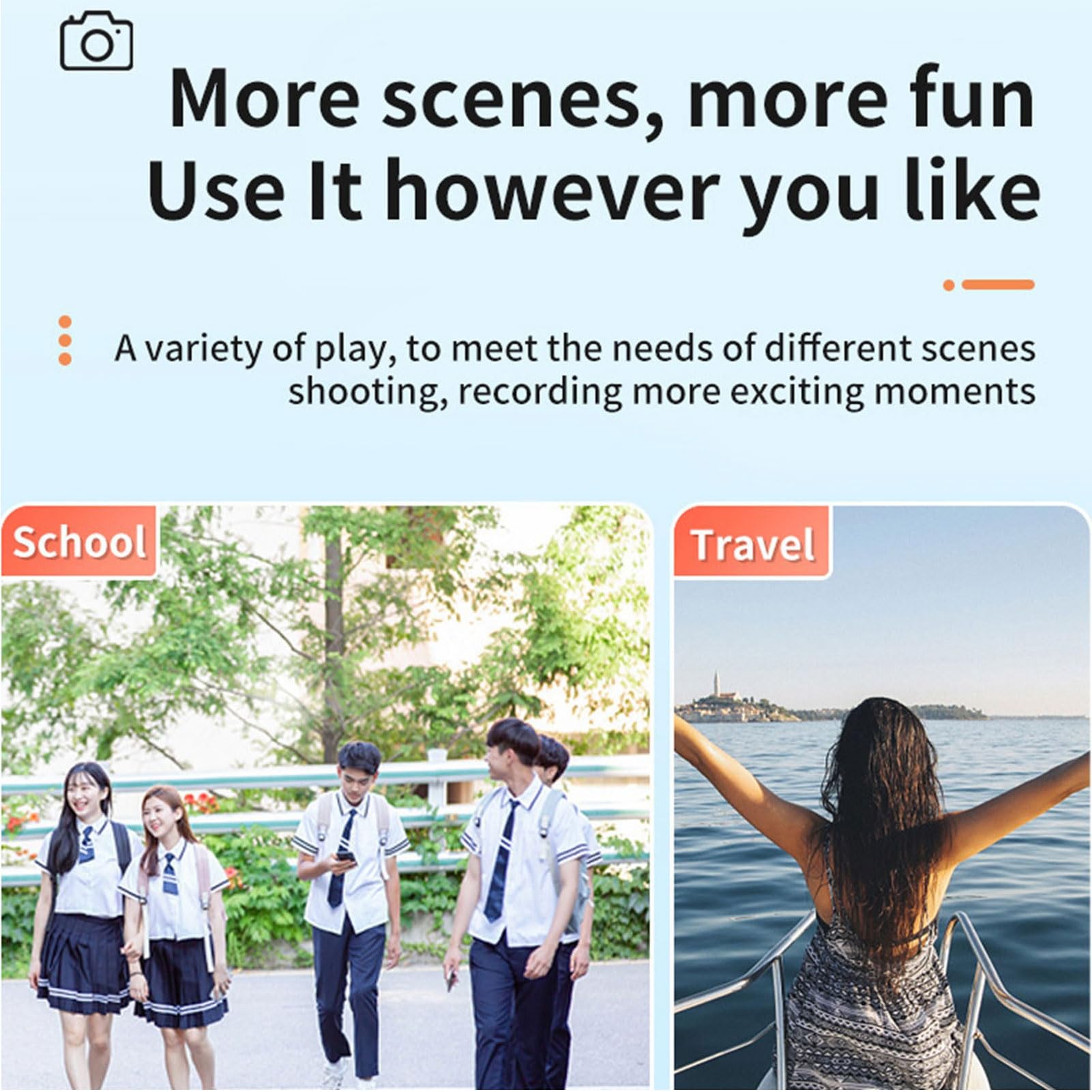 Compact and Stylish Design: With a thumb sized body, this portable camera is easy to carry and features a stylish design. It's ideal for capturing daily life, festive celebrations, study notes, and much more.