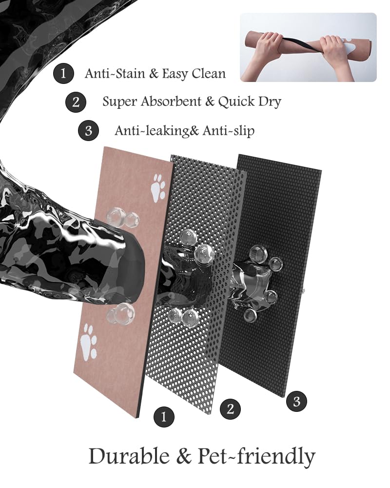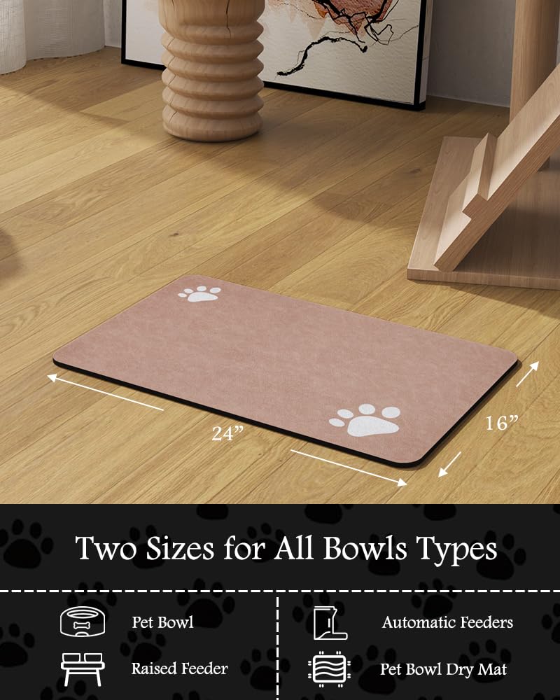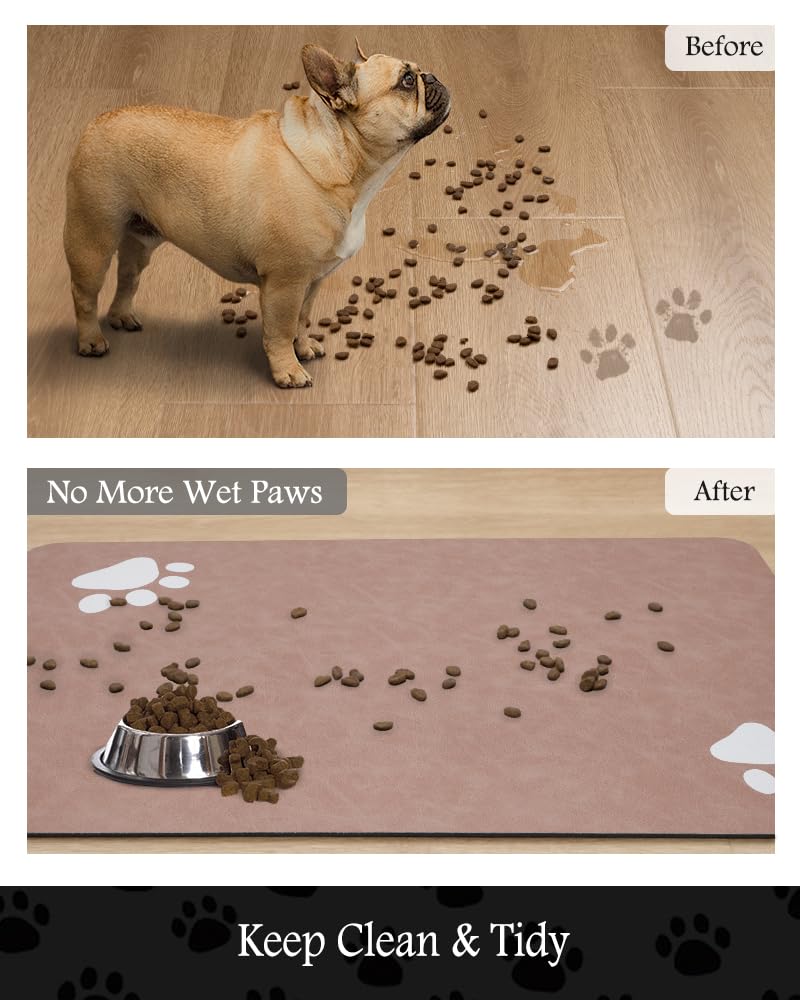 Super Absorbent & Durable: Perfect pet supplies.This pet food mat can prevent liquid from overflowing. Super absorbent and quick-drying ability to avoid wetting pet paws even for messy drinkers. Sturdy dog & cat food bowl mat cannot be torn easily and avoid eating by mistake. Keep the pet's eating environment tidy and clean.
