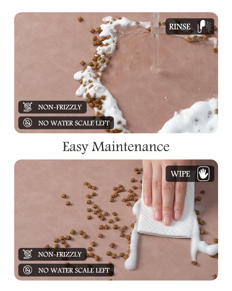 Keep Clean & No Stains:No marks will be left when food and water are dropped on the dog food mat. Unlike traditional silicone pet feeding mats, our pet feeding mat for food and water won't pick up pet hair or dust, and won't build up tough-to-clean limescale, keeping the dog bowl mat as good as new forever.