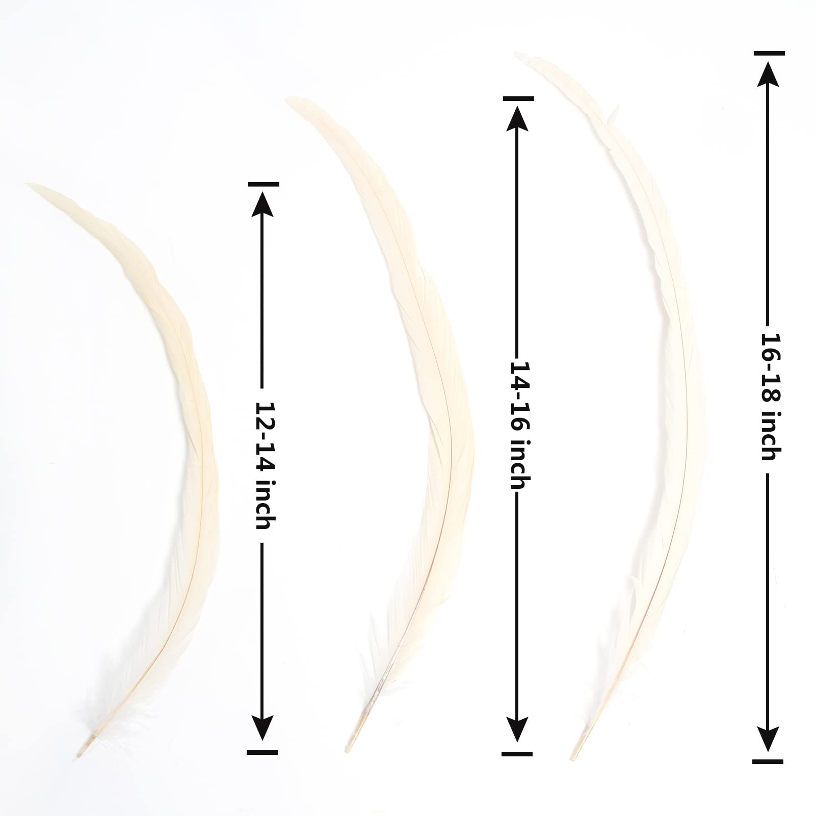 ❤️Feather size: There are four sizes for you to choose,size is divided into 12-14inch (30-35cm),12-14inch(35-40cm),16-18inch(40-45cm).These are real rooster tail feathers, each one is unique and the shape may vary.