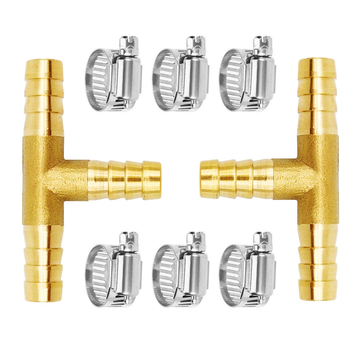 Packaging Includes:2 Brass hose barb tee fittings, they have three barb 5/16" x 5/16" x 5/16", 6 Stainless steel pipe clamps fit hose outer diameter of 10-16 mm.