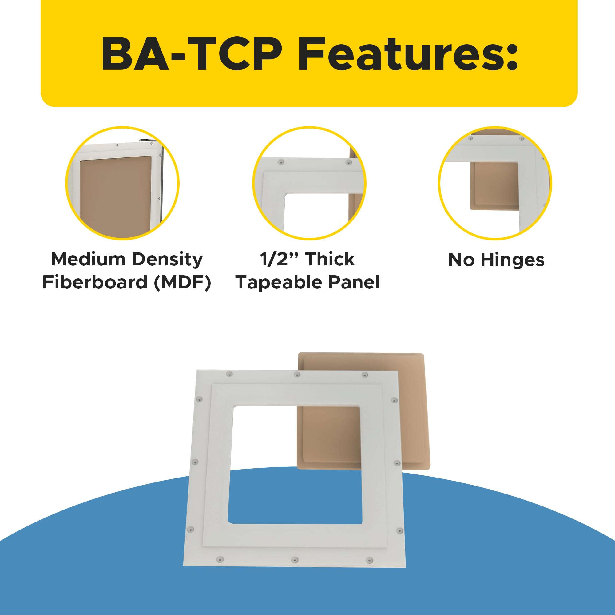 ✅ Premium MDF Construction: Crafted from Medium Density Fiberboard (MDF), this 1/2” thick tapeable access panel, ensures durability and a smooth surface for professional results.