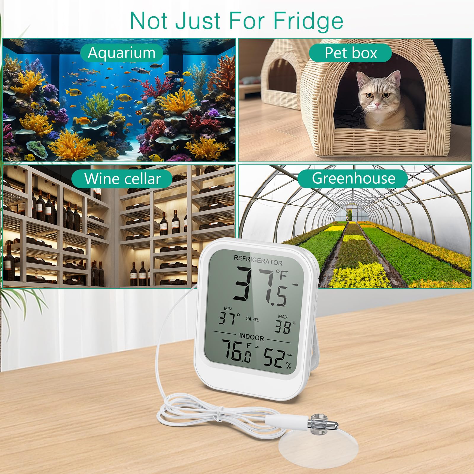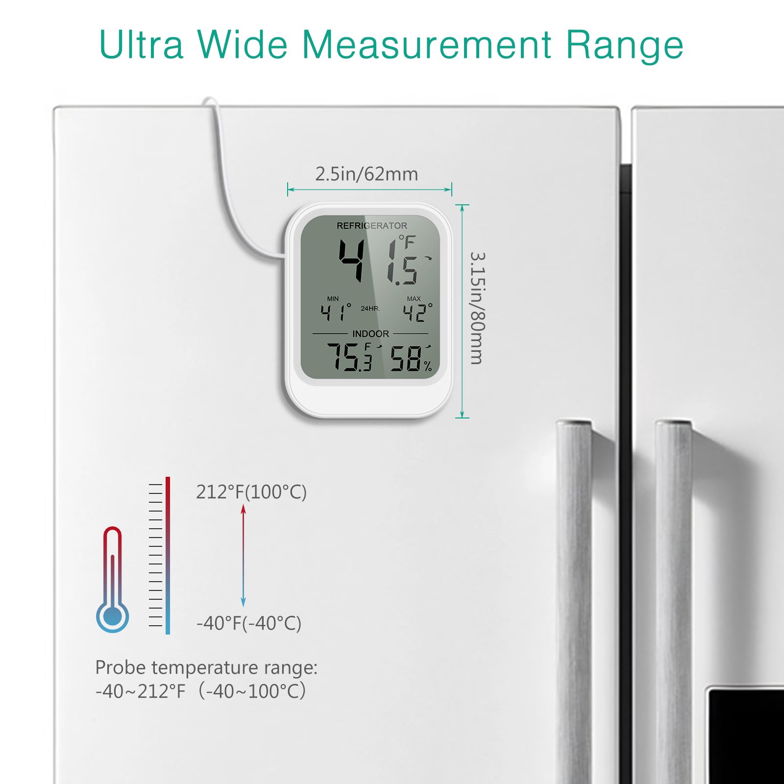 Versatile & Batteries Included: Designed for fridges, but as long as it is within the measurement range, it can be used in aquariums, pet terrariums, greenhouses, bathtubs, and even outdoor adventures! The included 2AAA batteries make the thermo-hygrometer ready to use when it arrives