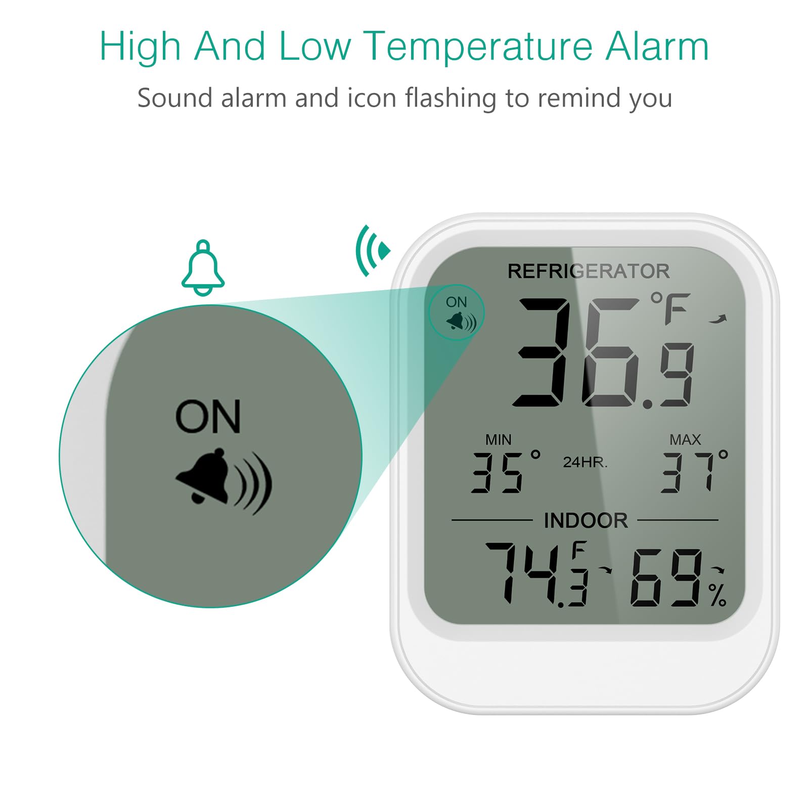 Smart Temp Alerts & Trend Display: Set custom alarms (-40℉~104℉) with a 1-minute delay. No false alerts when the refrigerator is opened briefly! Watch the trend arrows to spot temperature fluctuations and switch temperature units according to your habits