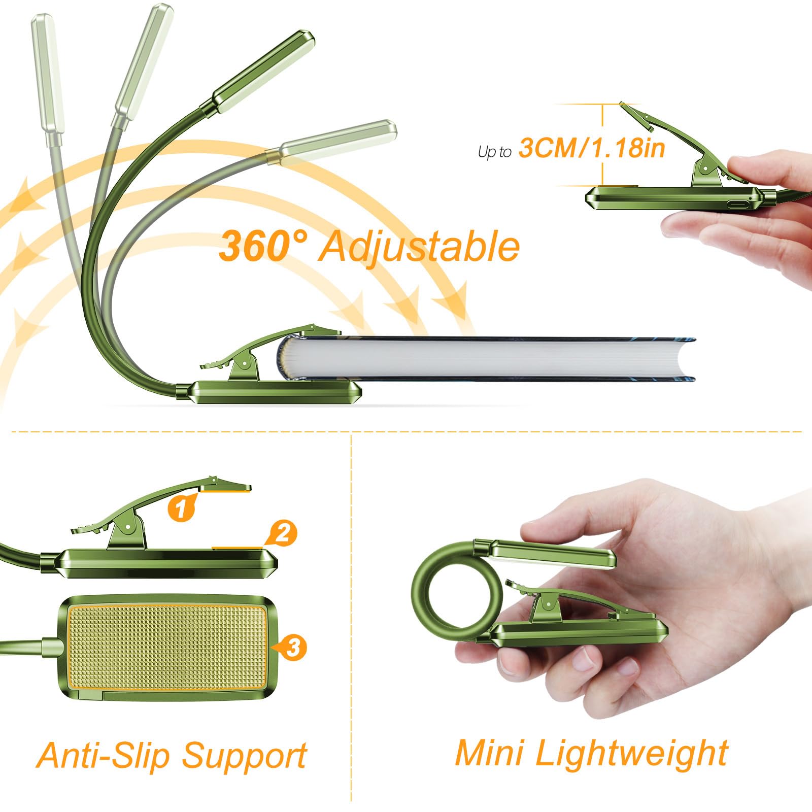 360° Flexible Neck & Sturdy Clip: 360° bendable goose neck can be rotated to any angle you want. Anti-skid clip design makes it firmly clamp on an e-reader, books, shelf, etc.
