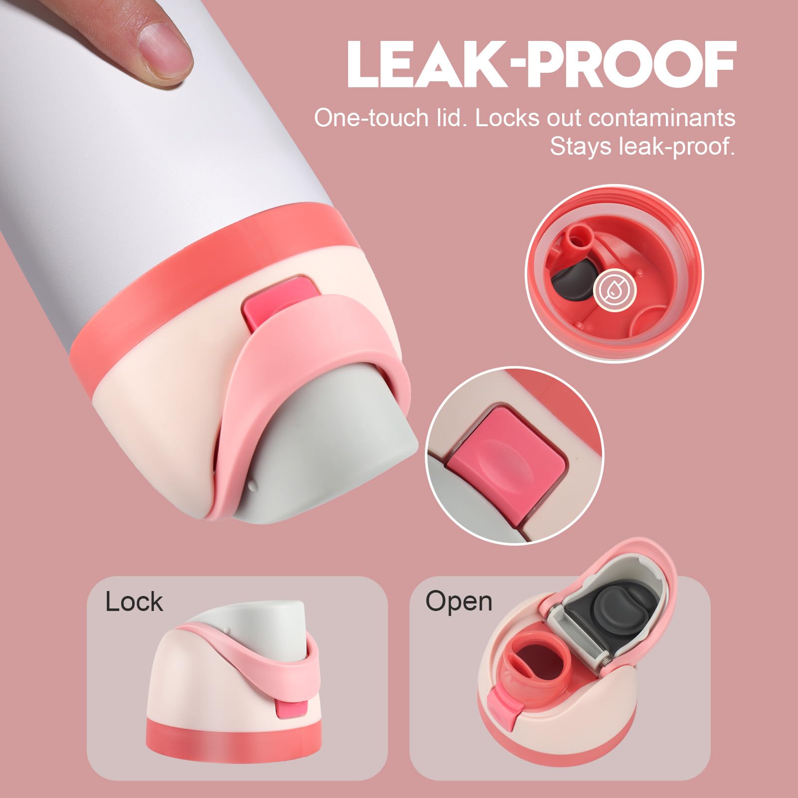 【Leak-Proof Design】Engineered with a precision seal, this lid effectively prevents leaks and spills. The secure closure allows you to confidently carry your bottle in a bag or backpack, ensuring worry-free portability.
