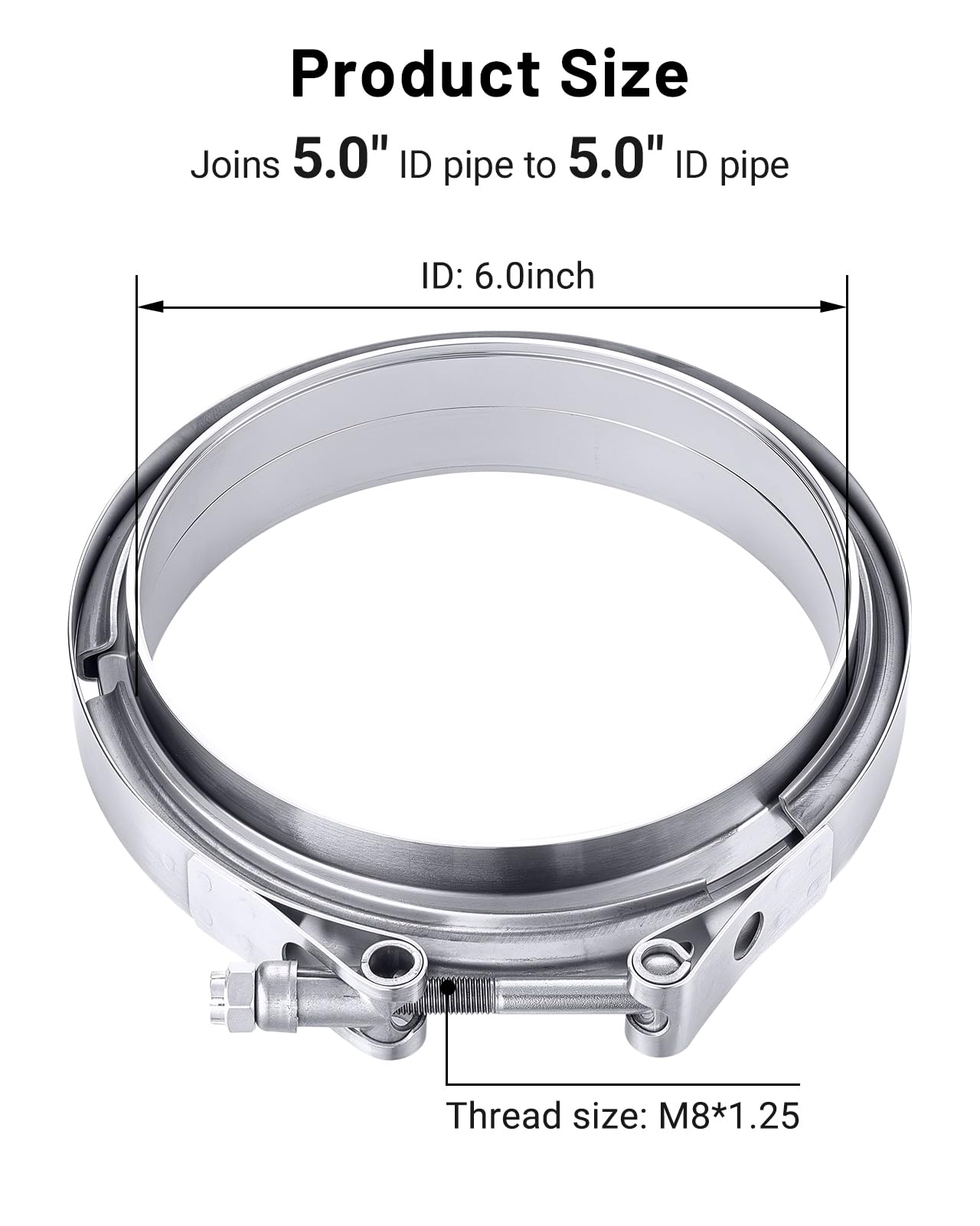 [Size] Joins 5.0" ID male/female flange to 5.0" OD pipe. T-Bolt thread size: M8*1.25
