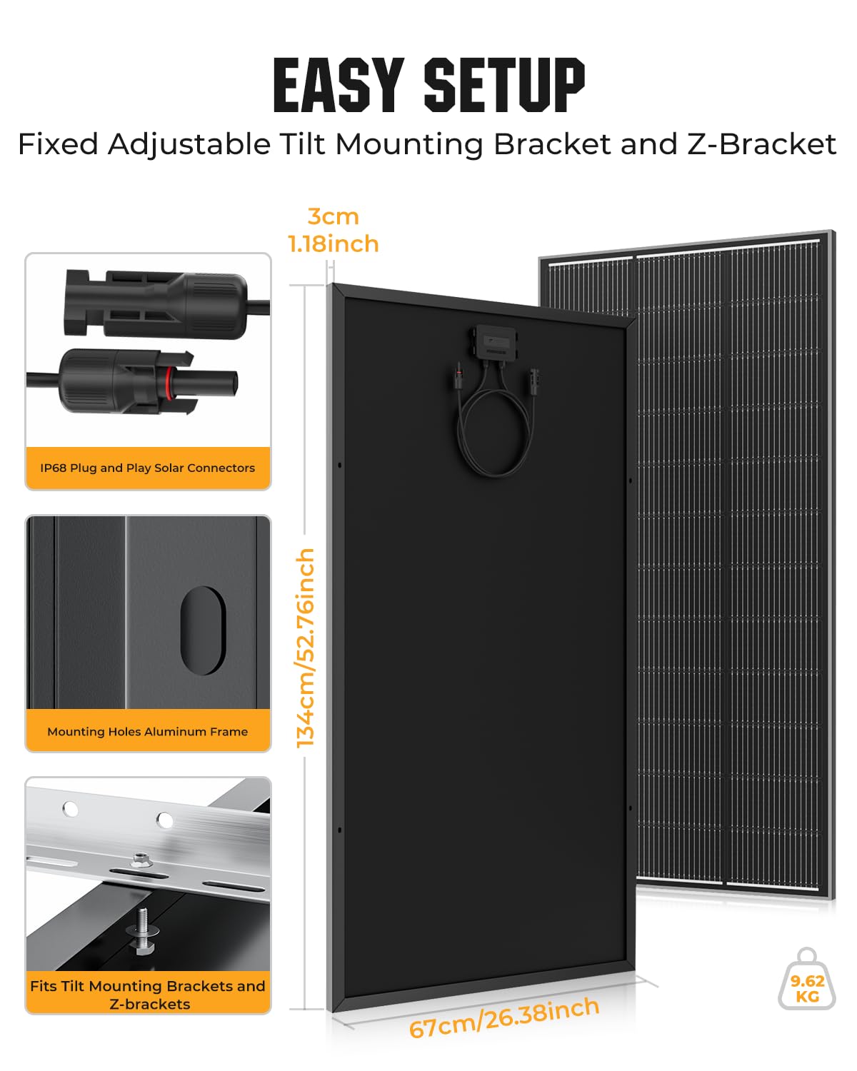 ๐๐๐ฌ๐ฒ ๐๐ง๐ฌ๐ญ๐๐ฅ๐ฅ๐ญ๐ข๐จ๐ง:There are pre-drilled holes on the back of the solar panel, you can install the bracket quickly and easily with more of the angle you want, it can fully meet the installation needs of various scenarios. And it is compatible with a wide range of brackets.