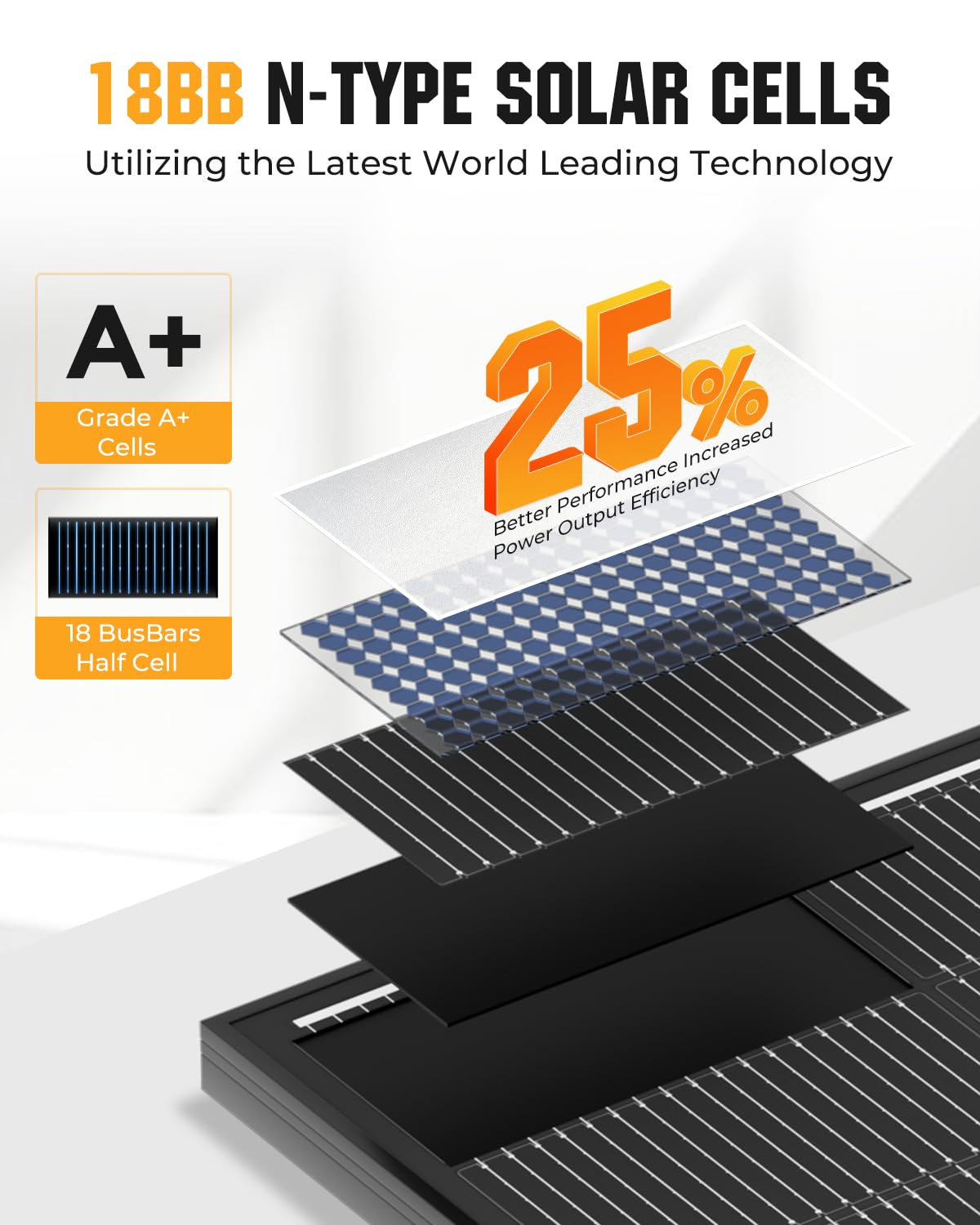 ๐๐๐๐ ๐๐๐๐ก๐ง๐จ๐ฅ๐จ๐ ๐ฒ: The RVPOZWER 200W 18BB solar panel utilizes advanced 18BB technology, which improves the photoelectric conversion efficiency and ensures a longer service life compared to traditional 10BB/12BB solar cells.