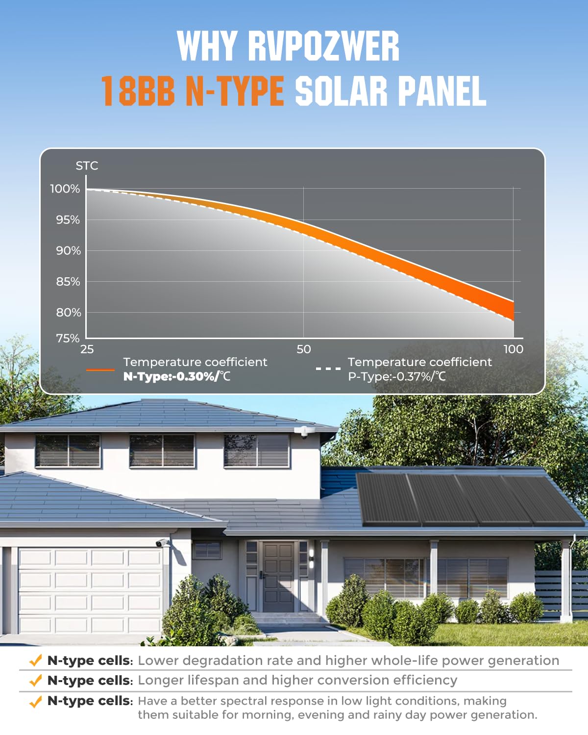 ๐-๐๐ฒ๐ฉ๐ ๐๐จ๐ฅ๐๐ซ ๐๐๐ง๐๐ฅ๐ฌ, ๐๐% ๐๐จ๐ง๐ฏ๐๐ซ๐ฌ๐ข๐จ๐ง ๐๐๐๐ข๐๐ข๐๐ง๐๐ฒ๏ผ200 watt solar panel utilizes advanced N-Type solar cells with an increased cell efficiency of 25% EL tested. Provides approximately 1000 watt-hours per day (based on approximately 5-6 hours of light per day).