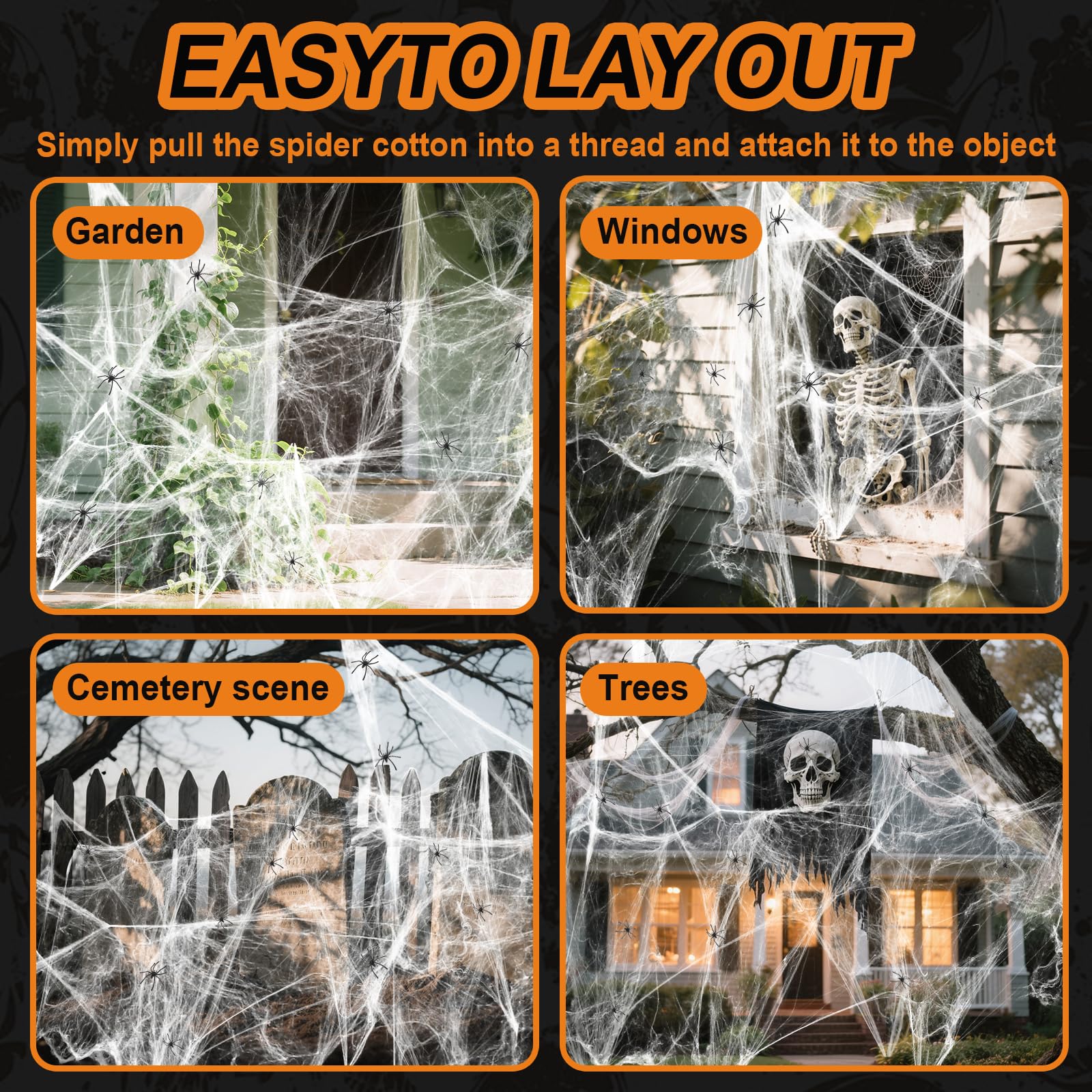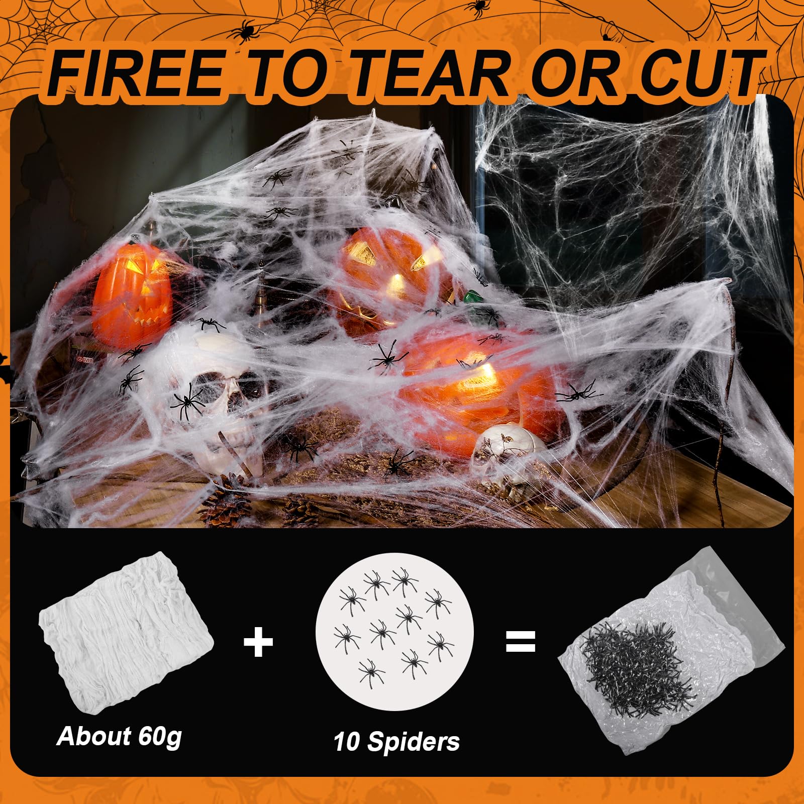 Creepy and Realistic Spider Web: The bulk spider web can be torn apart as desired for easy hanging to create a mysterious and scary atmosphere. The more you stretch the spider web, the more realistic it will look. Easy to clean and won't damage your furniture.