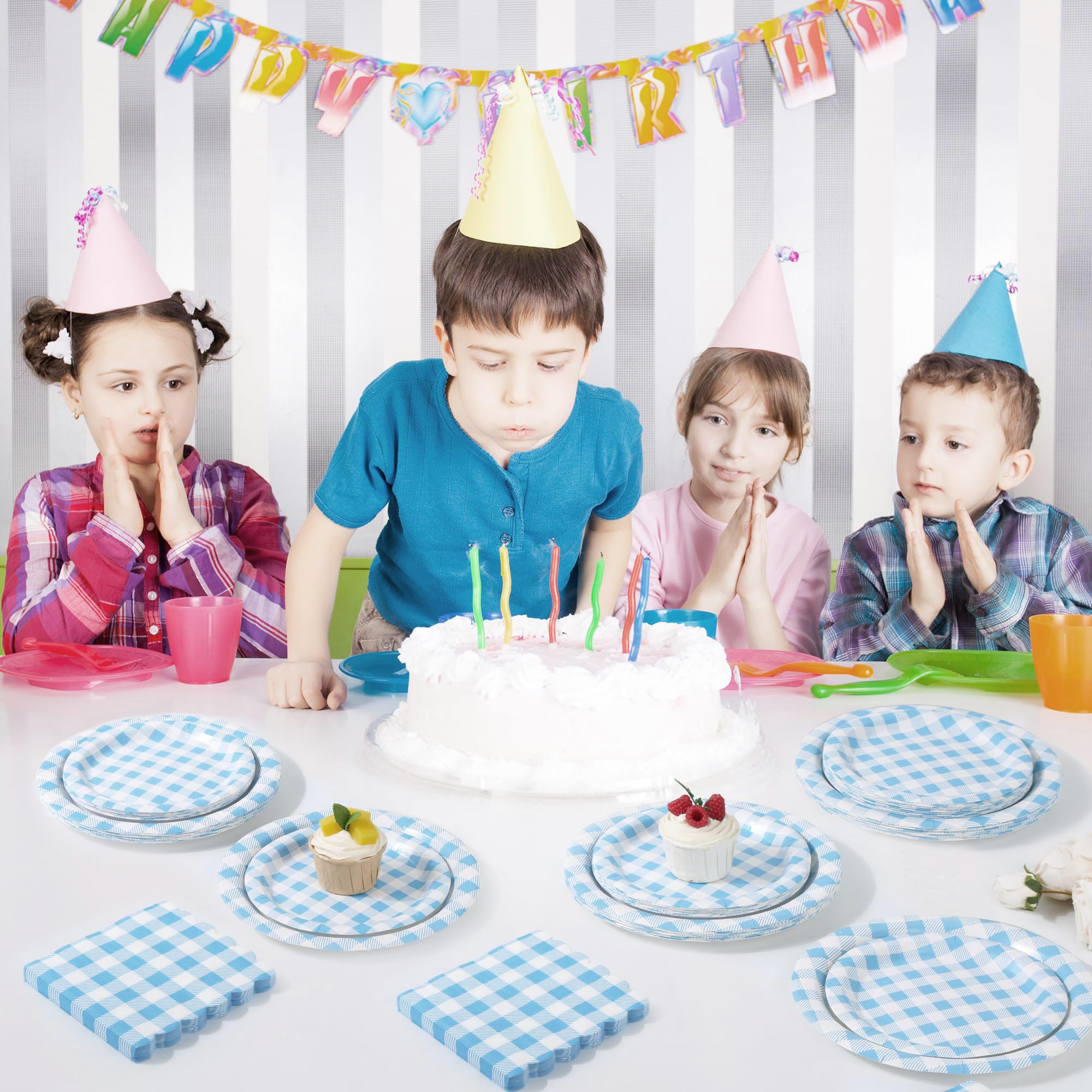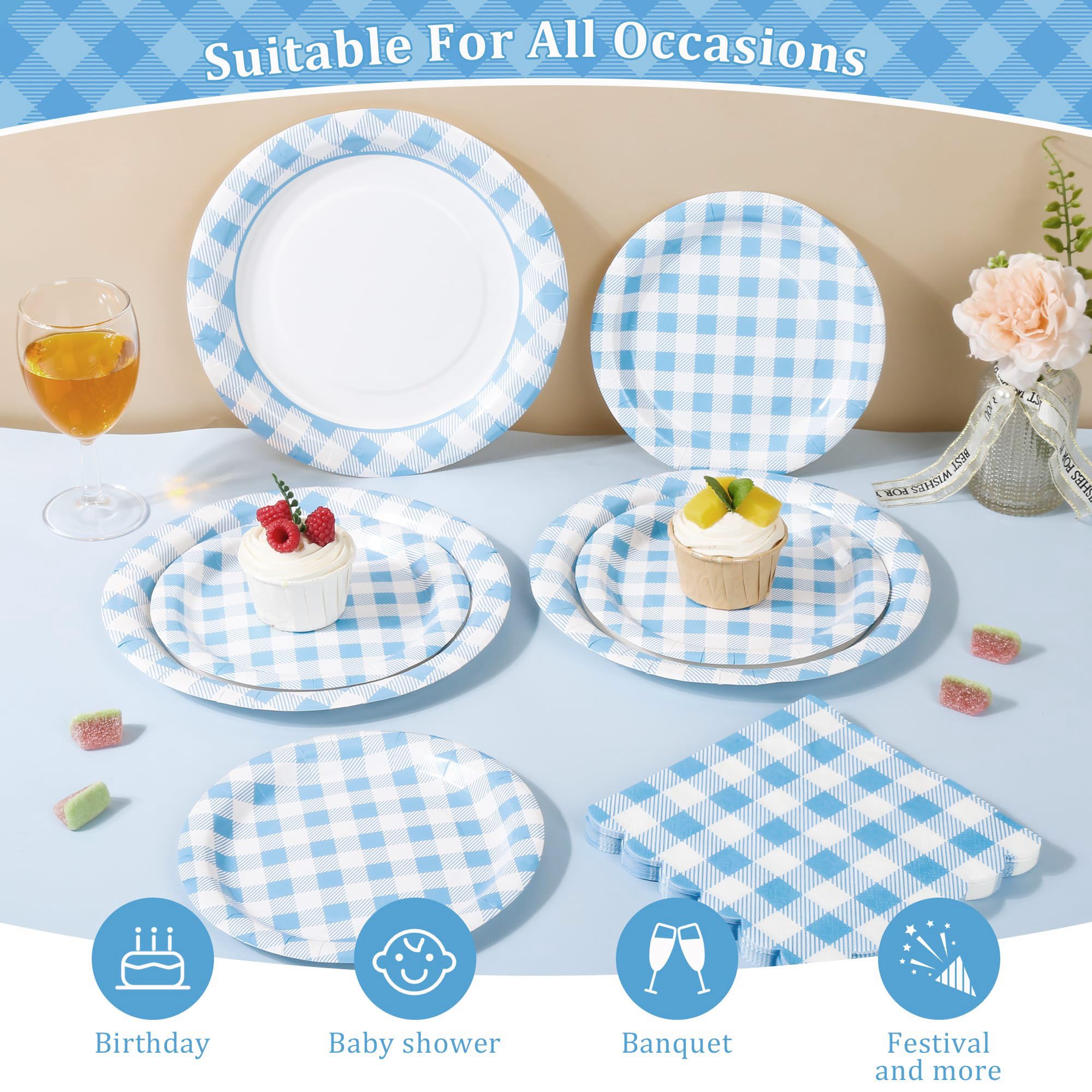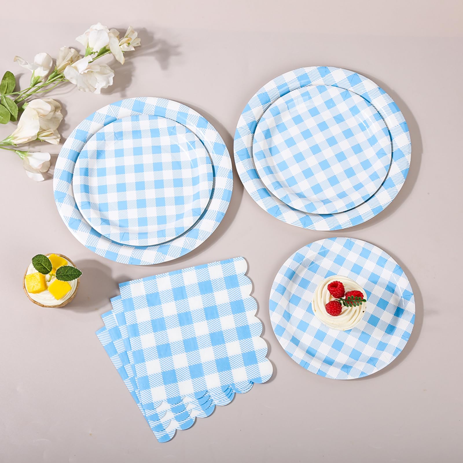 ALL OCCASIONS DINNERWARE: Our plaid blue paper plates are suitable for birthday family fall picnic BBQ Party or any special event. The design of the light blue gingham color plate looks eco-friendly and safe, adding more charm to your party.
