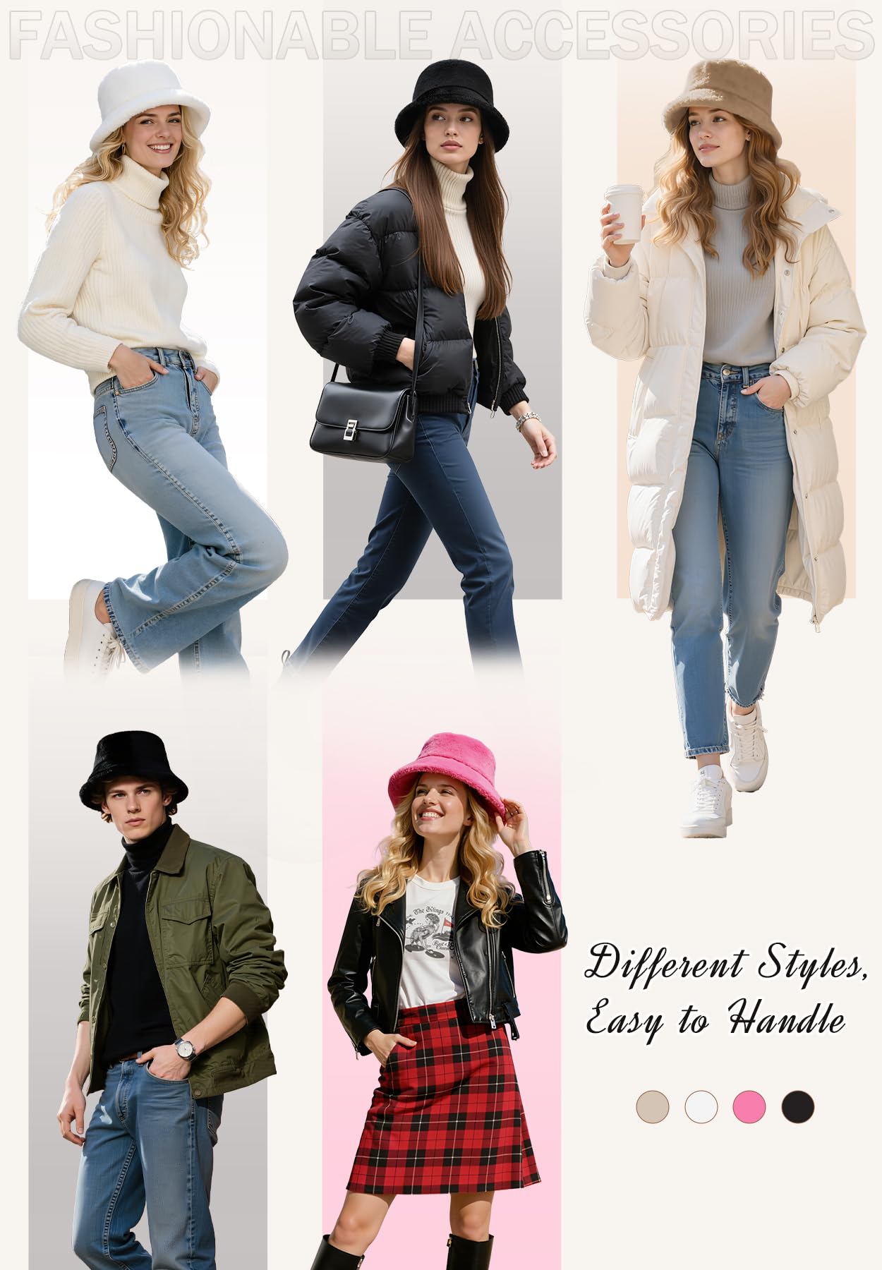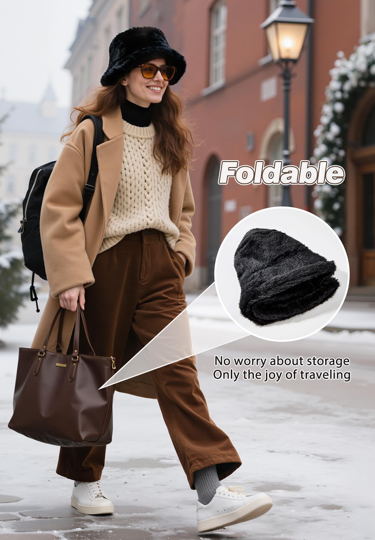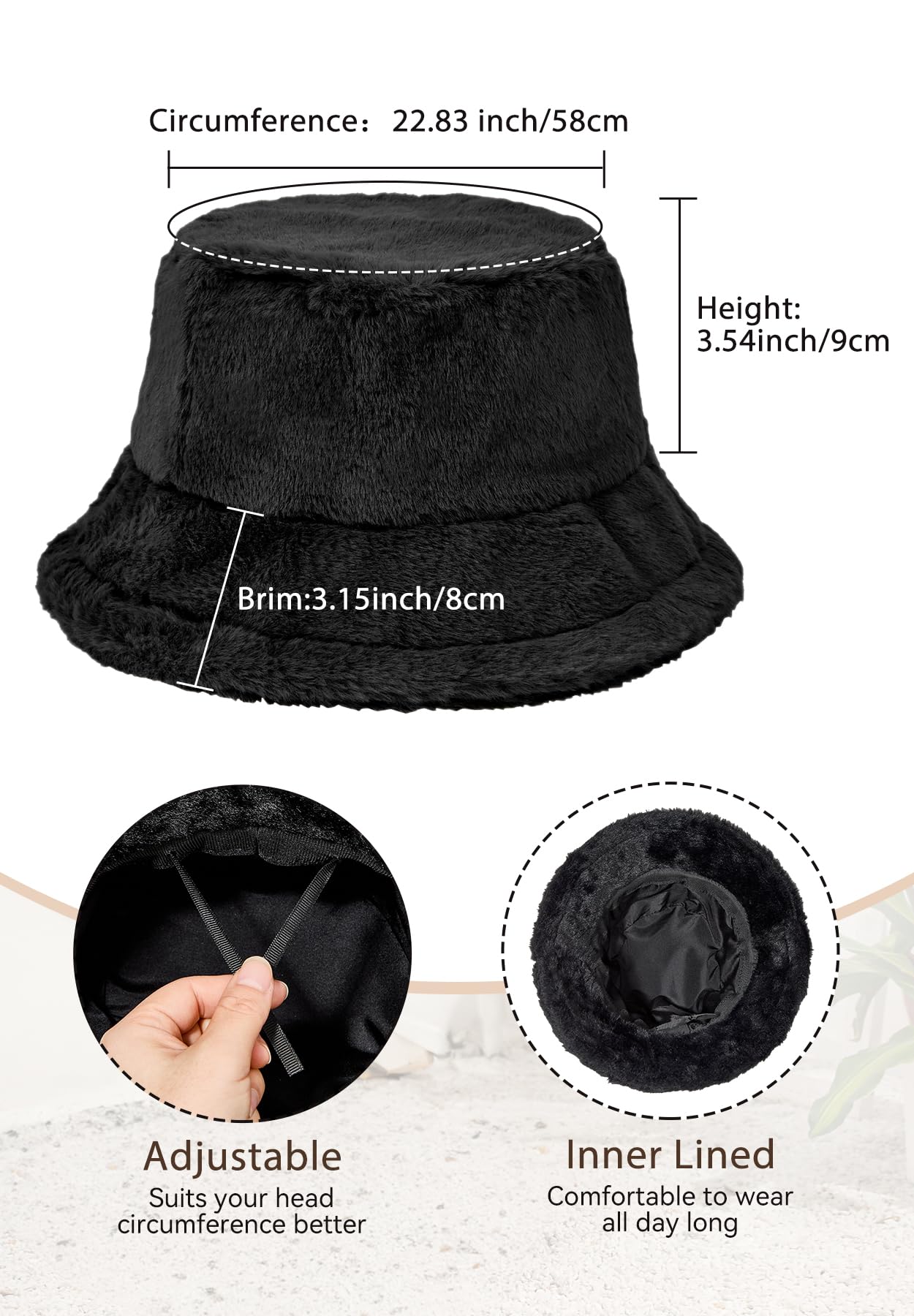 Adjustable & Foldable: Faux fur bucket hat is one size, adjustable inside, Unisex Fit, circumference is 22.1-22.8inch (56-58cm),suitable for most adult women men or teenagers. Crease-resistant design folds flat without losing shape, fitting easily into pockets or backpacks. Perfect for hiking, beach trips, or city adventures, this warm winter hats for women is a must-have for travelers.