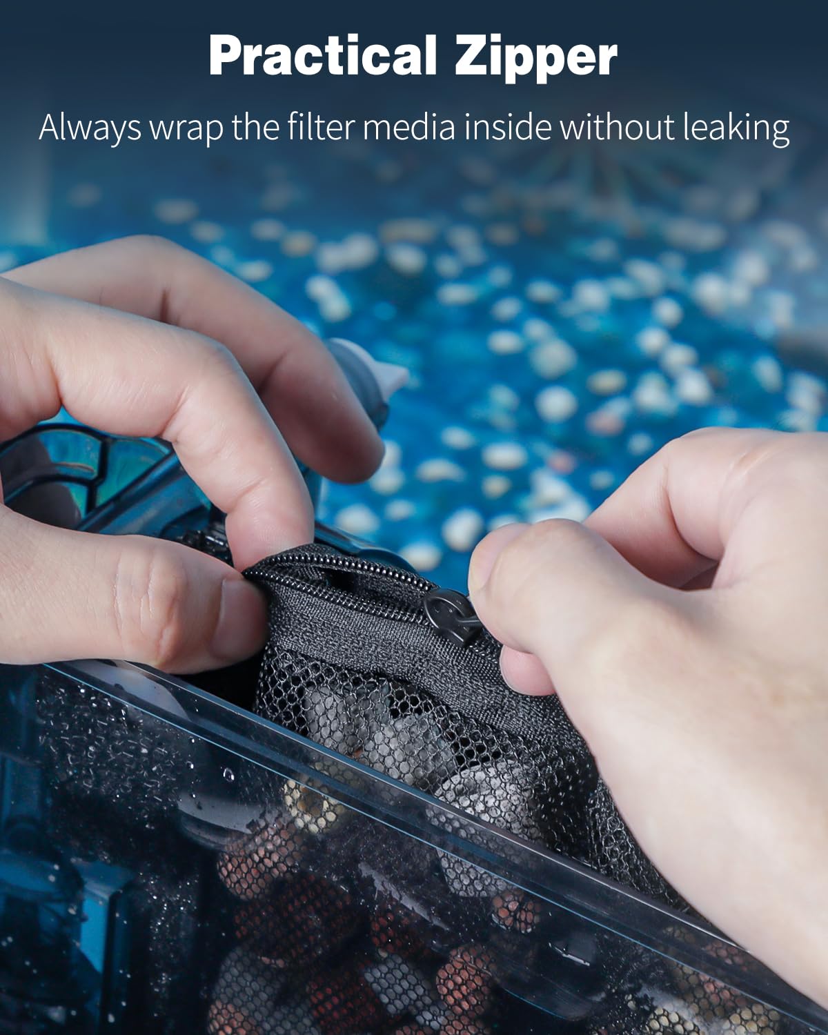 Practical Zipper: The opening of the filter material bag is sealed by a top zipper. It always wraps the filter media inside without leaking out. Convenient to open or close the bag for easy replacement of materials.
