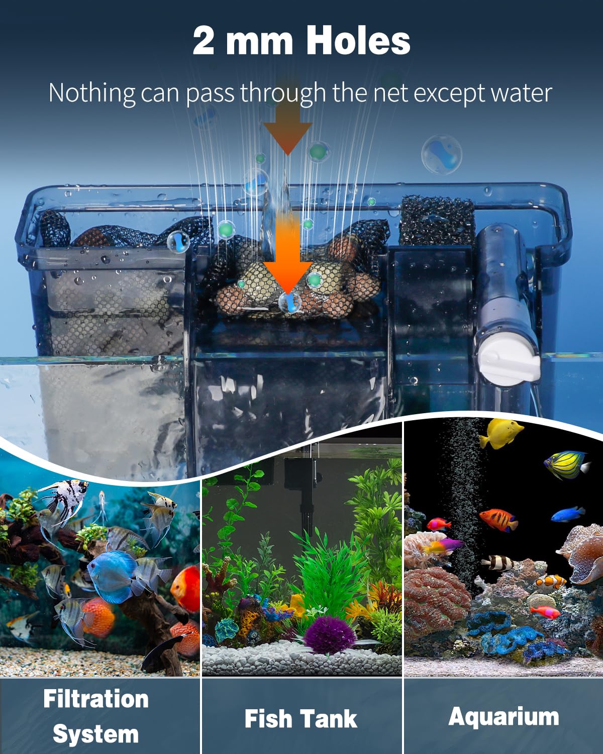 Reliable & Safe: The reusable mesh filter bag is washable and fade-resistant. No need to worry about contaminating the water. Trustworthy to keep fish healthy anytime and reliable for long-time use.