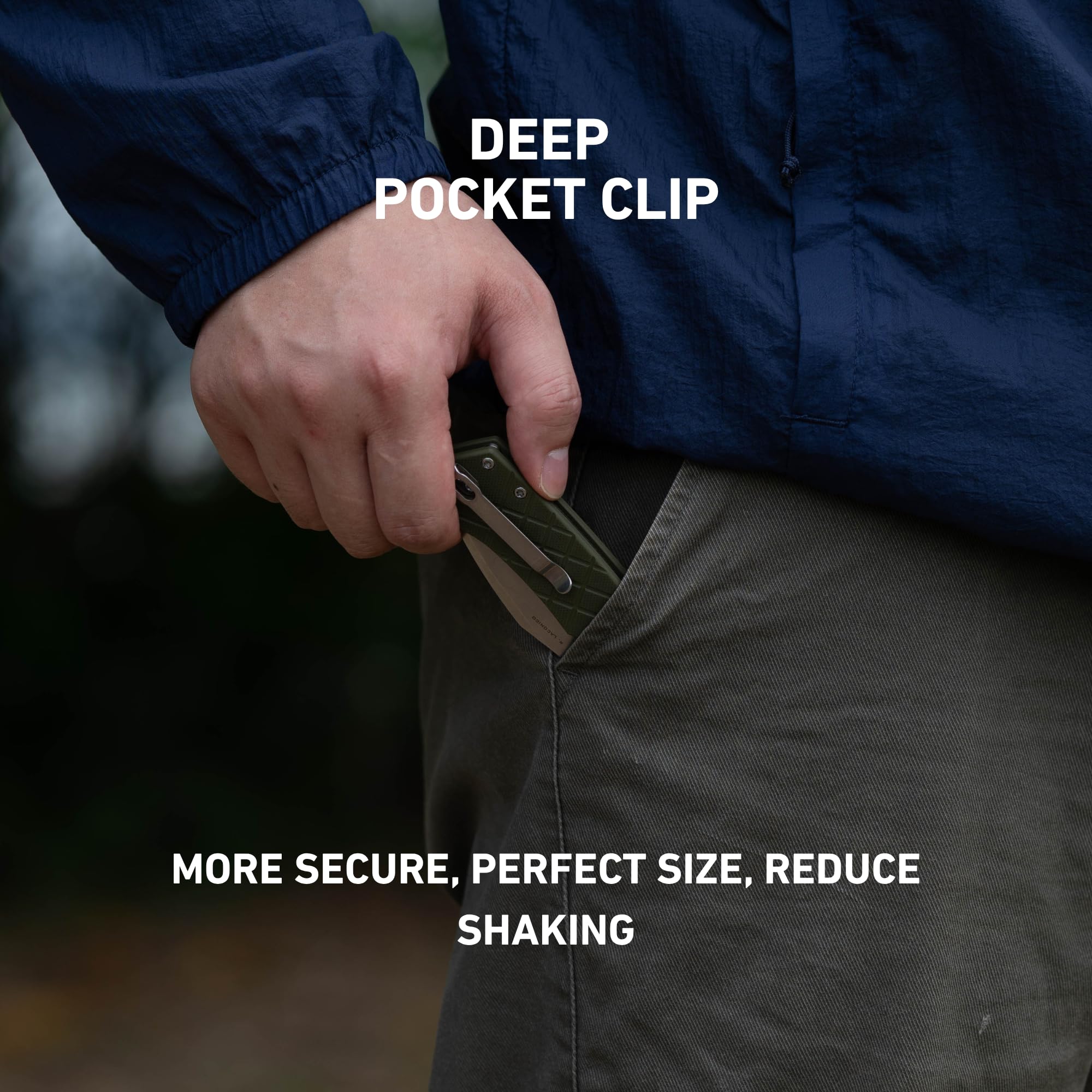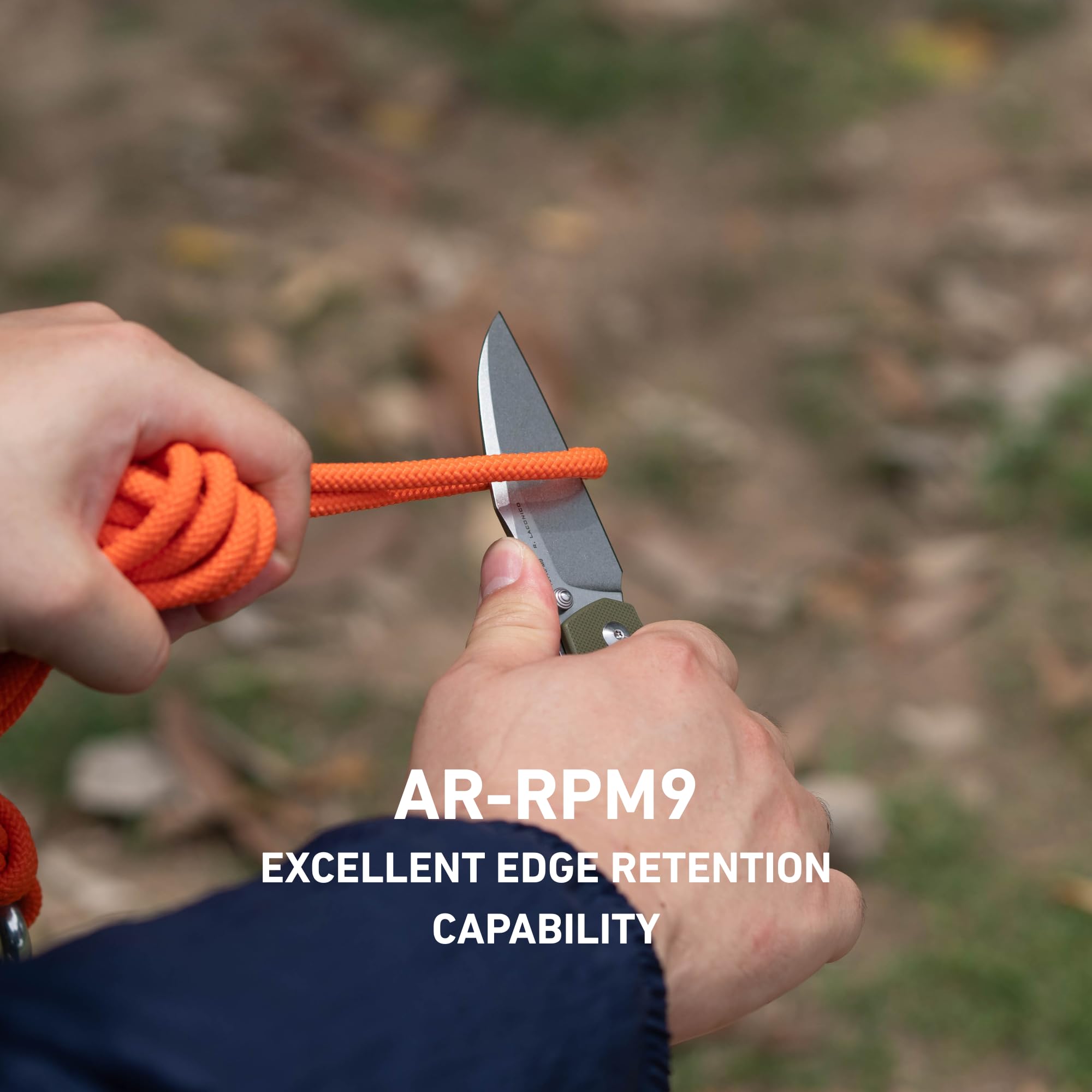 Sharp Cutting Edge: The Kestrel folding pocket knife features a 3.31'' AR-RPM9 steel blade. With a flat grind, drop point style and and a super high hardness of HRC59-61, ensuring excellent edge retention and durability, making it an ideal choice for various cutting tasks. Ideal for pocket knife enthusiasts