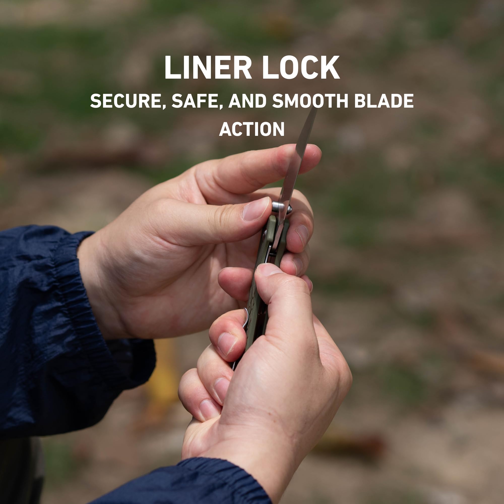 Effortless Opening: The Kestrel folding knife features a liner lock mechanism, ensuring that the blade remains securely locked during use. The ceramic ball-bearing pivot construction and thumb stud design ensures swift one-handed flip deployment and smooth closure