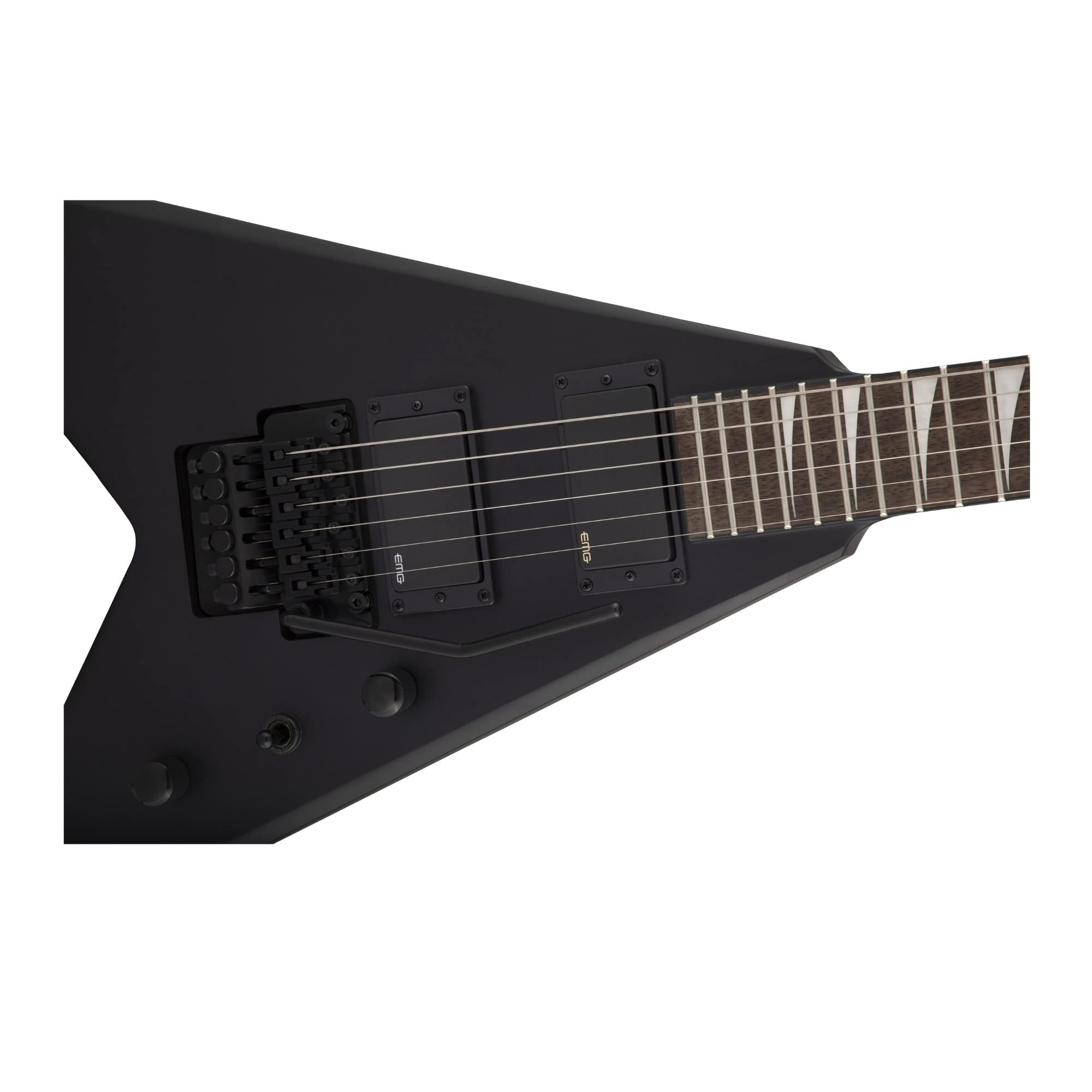 Speedy "V" with a Floyd Rose and 85/81 EMGs The Jackson X Series King V KVXMG draws on a proud lineage rock and metal royalty. Its lightweight string-through poplar body and graphite-reinforced maple neck are well equipped for all shades of tonal tyranny. A compound fingerboard radius gives you wicked playability in any fret position. And active EMG 85/81 humbucking pickups — the consummate high-gain pickup set if there ever were one — deliver the pummeling attack and blistering heat your amps and modelers have been waiting for. Factor in a double-locking Floyd Rose Special trem system that twists and dives with the best of them, and with the X Series King V KVXMG from Sweetwater, you're well on your way to creating memorable rock and metal riffs.Built for speed Not many necks play faster than the King V KVXMG's graphite-reinforced maple neck with laurel fingerboard and 12–16-inch compound radius.