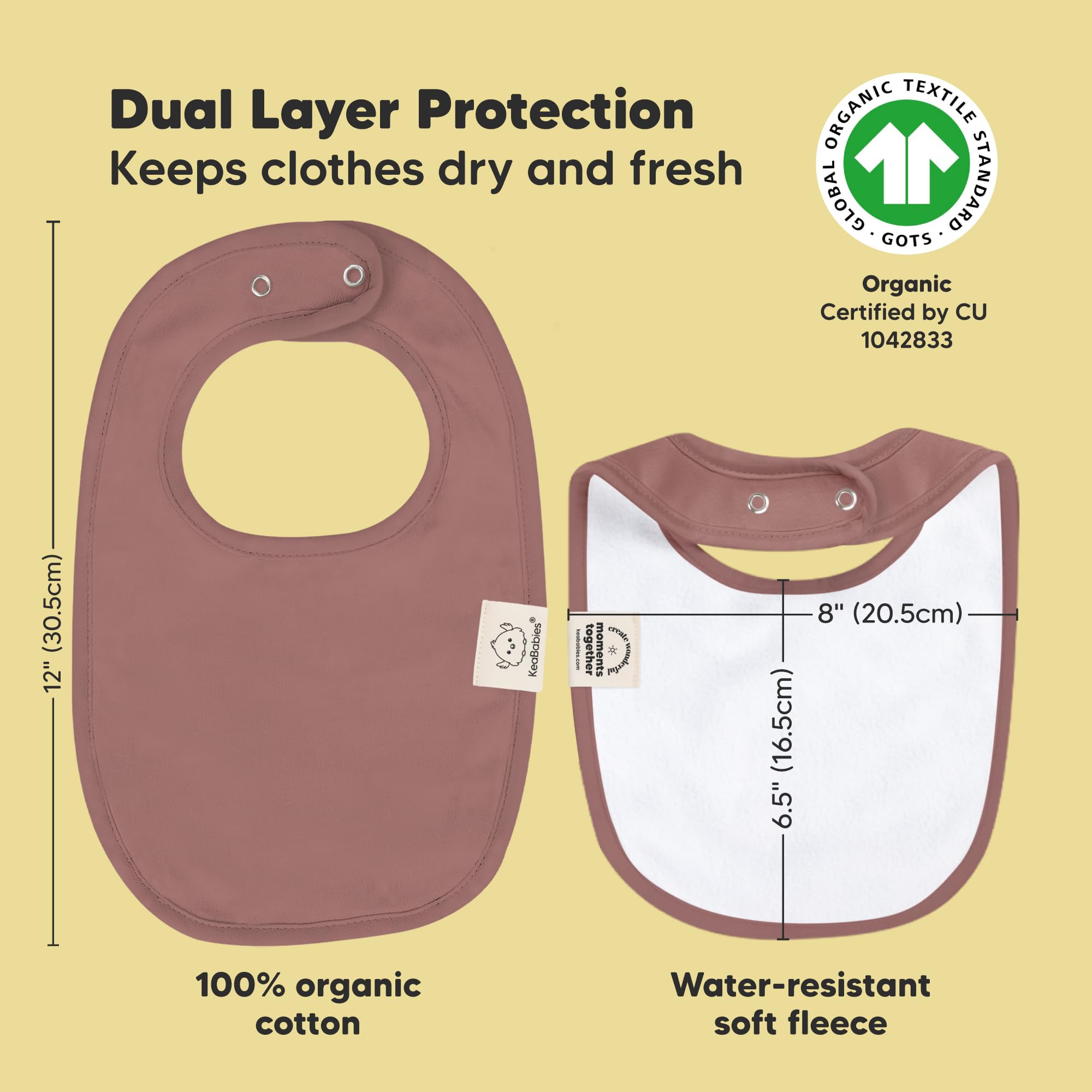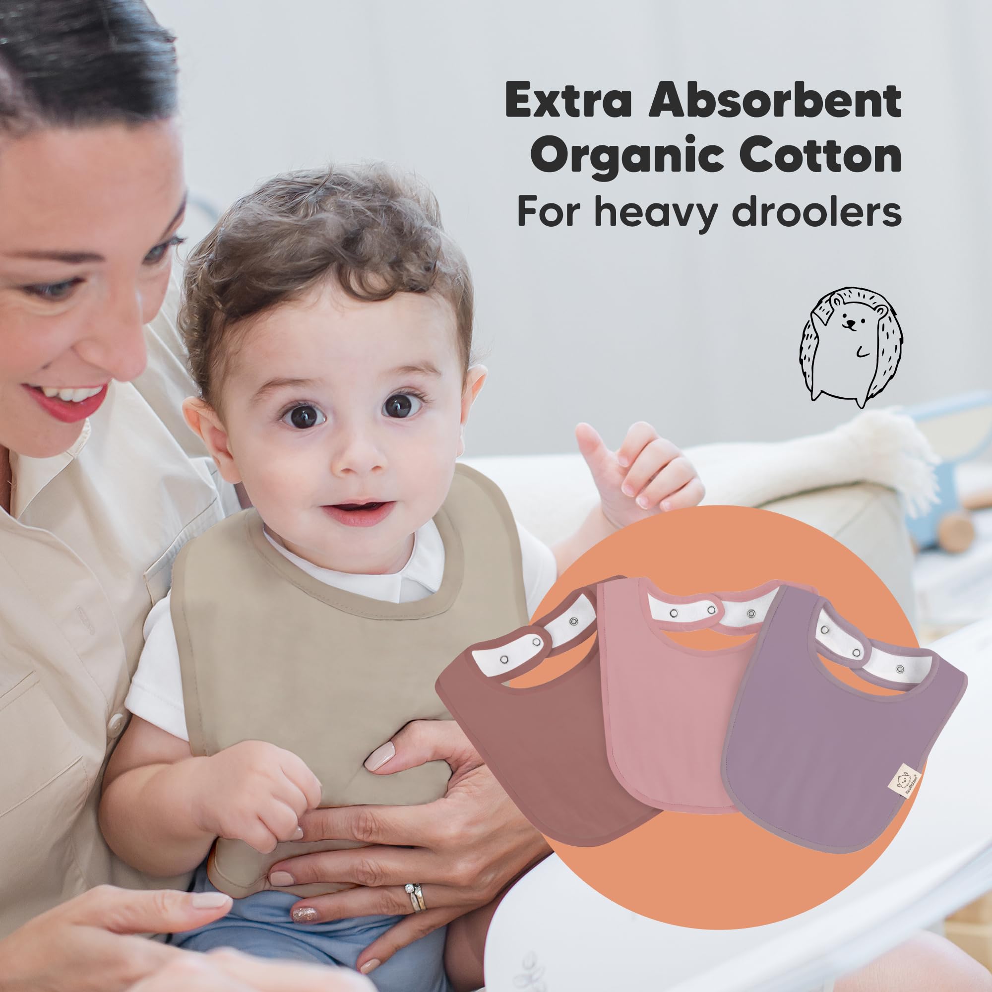 Super Absorbent - Our organic baby boy and girl bibs are made with 100% organic cotton (GOTS-certified) and backed with water resistant fleece for added absorption. This dual layer design helps to keep your baby clean and fresh all day long. Suitable for newborns, infants, toddlers, heavy droolers and teething babies.
