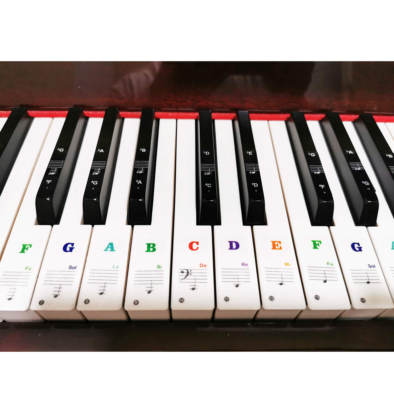 🎹 Durable: The letters are printed on the backside of the transparent sticker, so they can withstand constant impact of fingers, will be always legible and never fade. Waterproof, when the surface is dirty, simply wipe it with a damp cloth to clean.