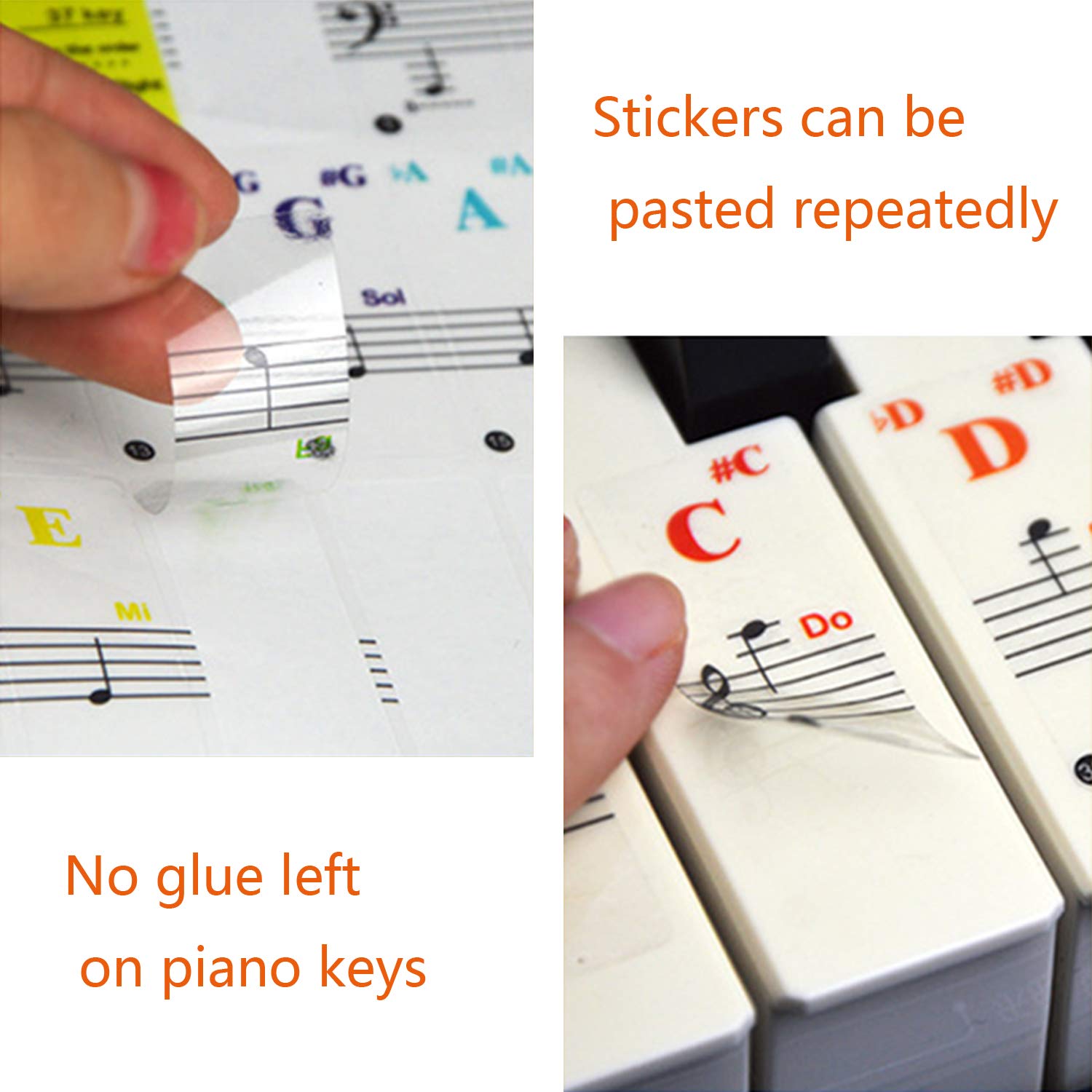 🎹 Good Feeling: Piano key stickers are very thin and you can barely feel them when you play the piano. The sticker has a smooth surface and no resistance, making it comfortable when practicing techniques such as portamento and arpeggios.