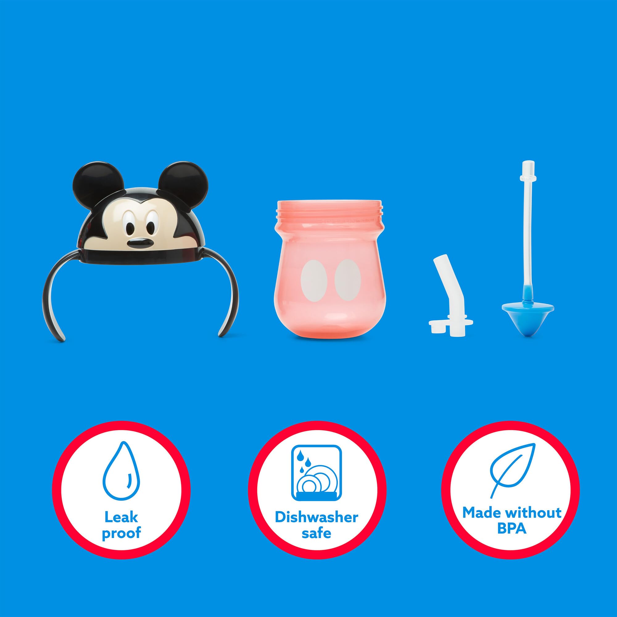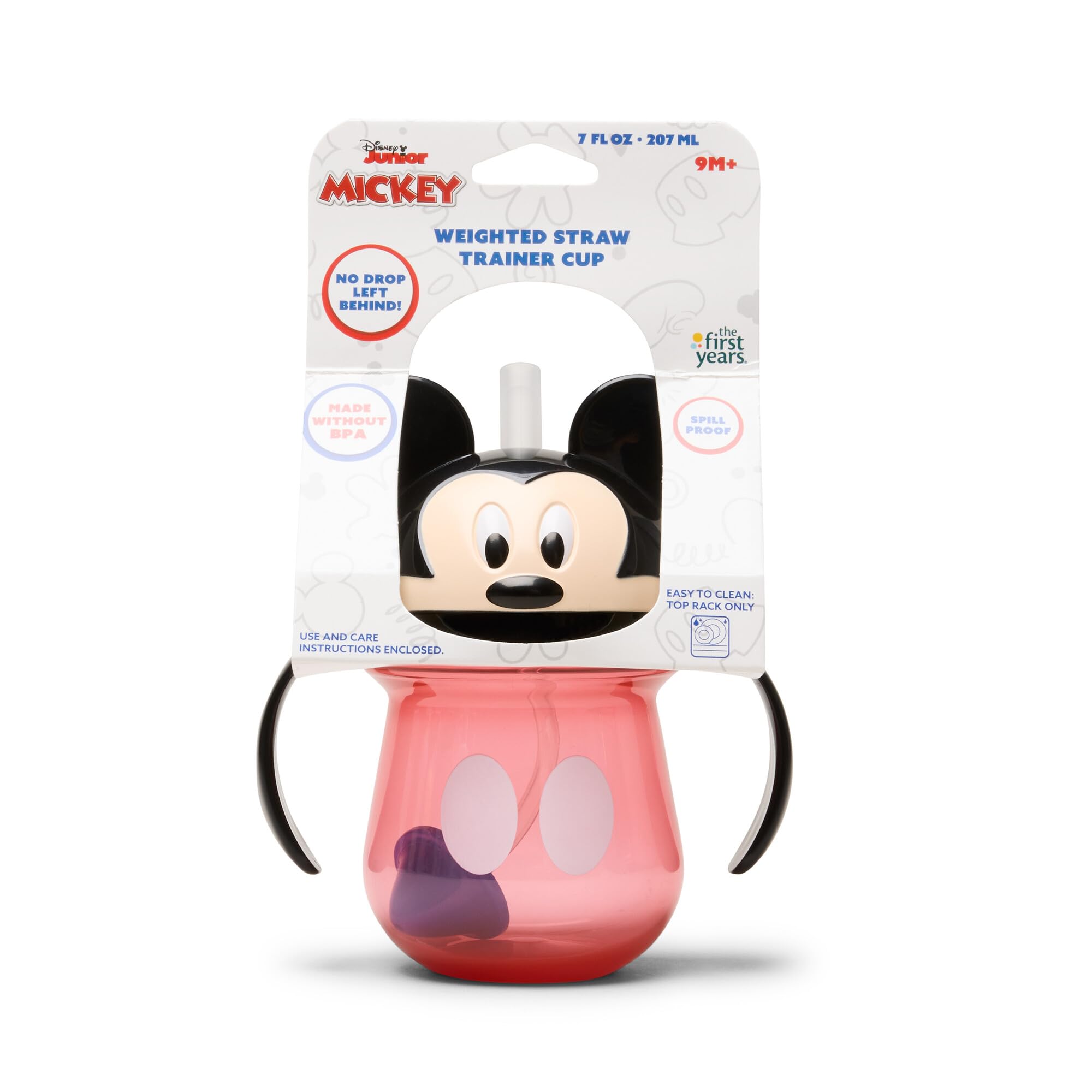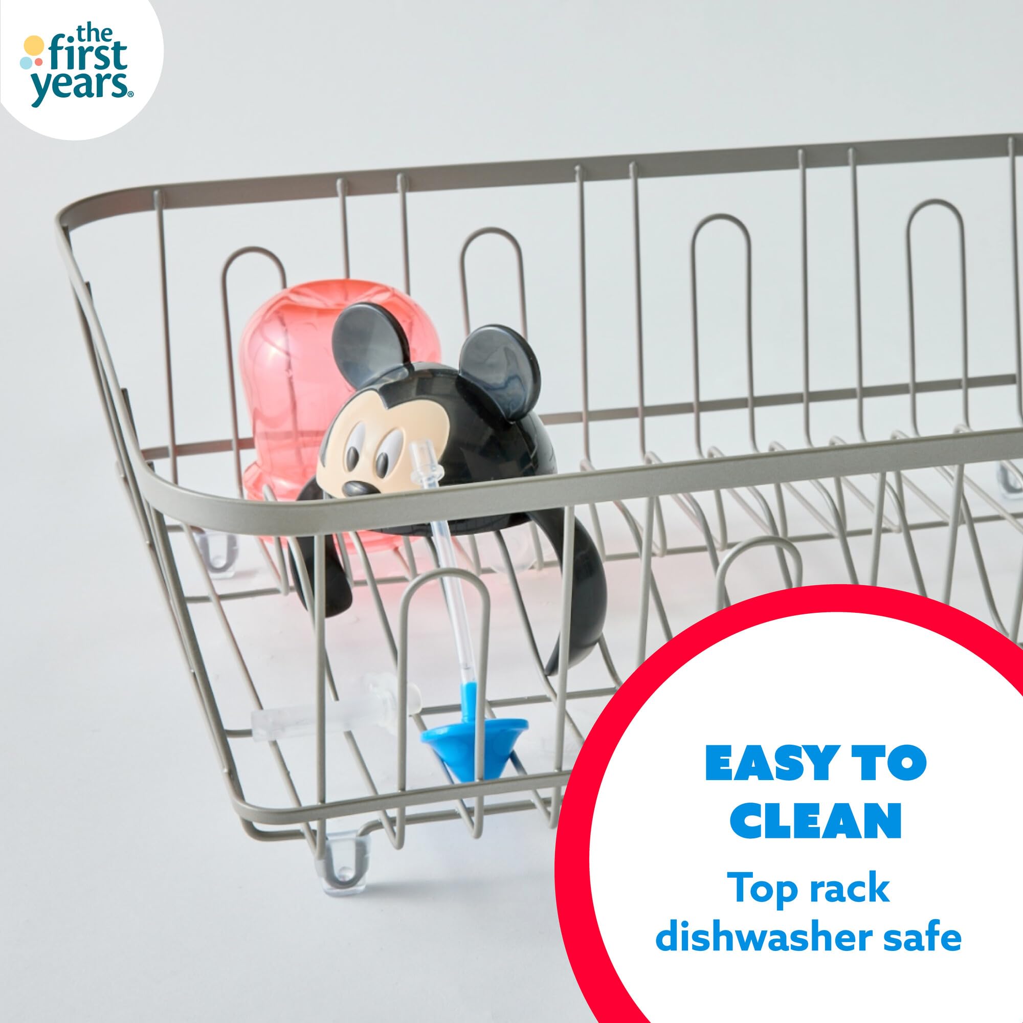 Easy to Clean: This Mickey Mouse training cup is ready to be used again and again with a design that is top-rack dishwasher safe for simple and quick cleaning