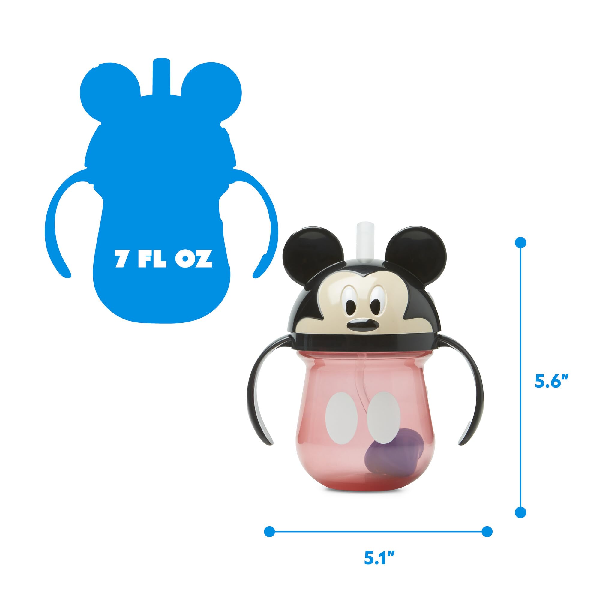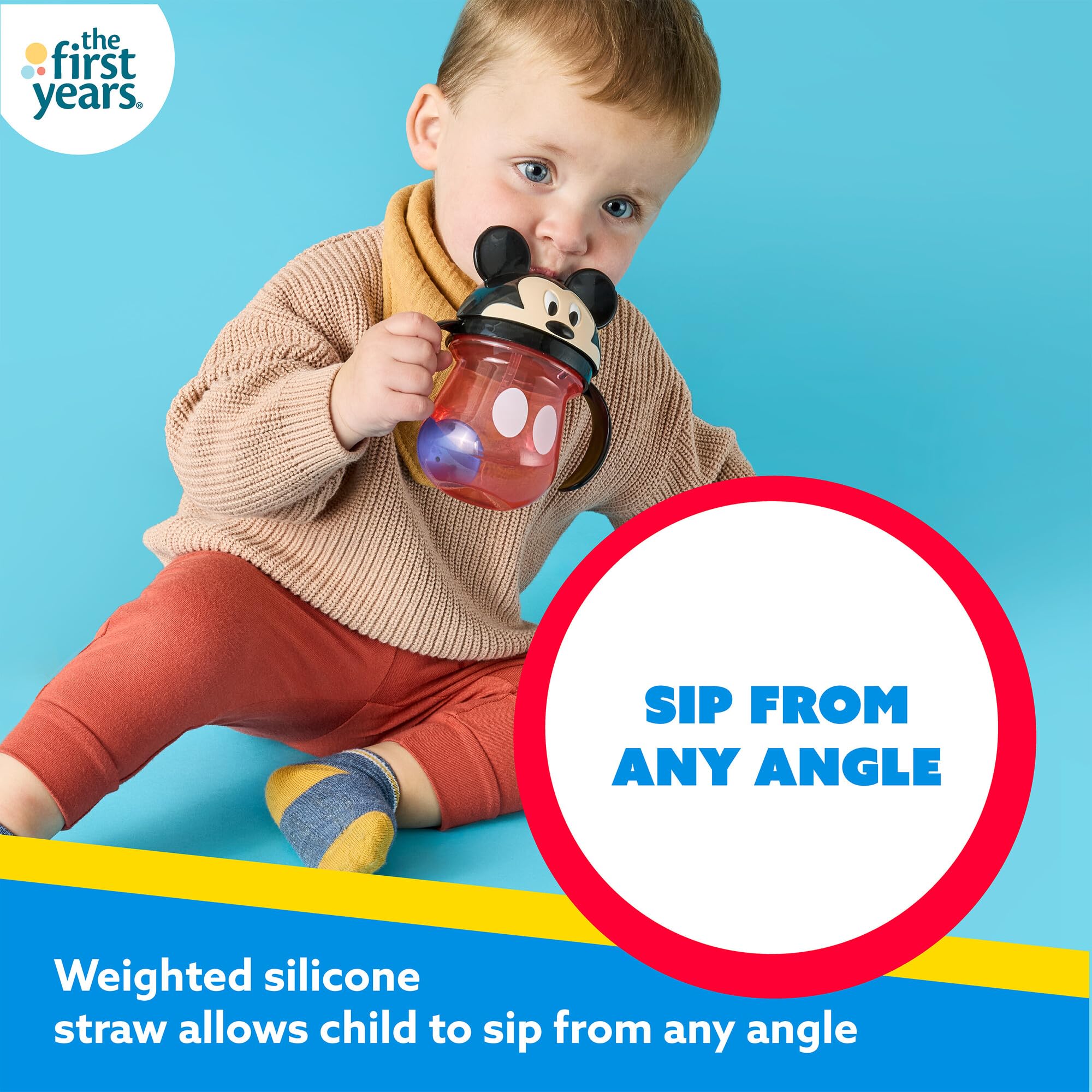 Sip from any Angle: This Mickey Mouse sippy cup includes a weighted silicone straw that allows kids to sip beverages from any angle with no drop left behind