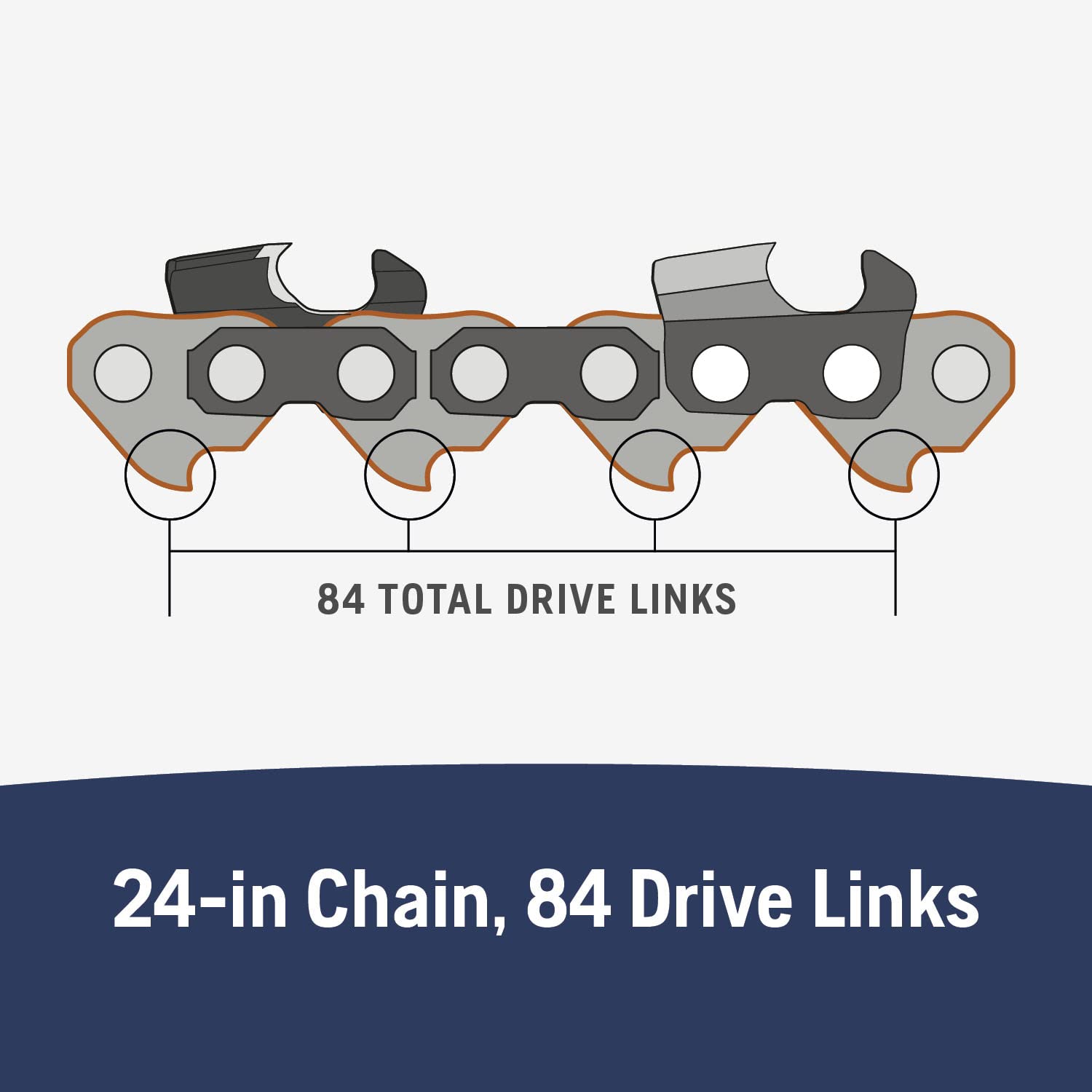 This Husqvarna 24" chain provides excellent precision and cutting efficiency to improve maneuverability and reduce strain and fatigue