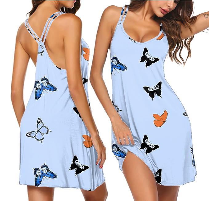 Material: The sleeveless nightgown is 95% Polyester and 5% Spandex. Stretchy breathable fabric with great touch, super soft and comfortable, makes it light and ideal for summer. Tips: Do not use a dryer