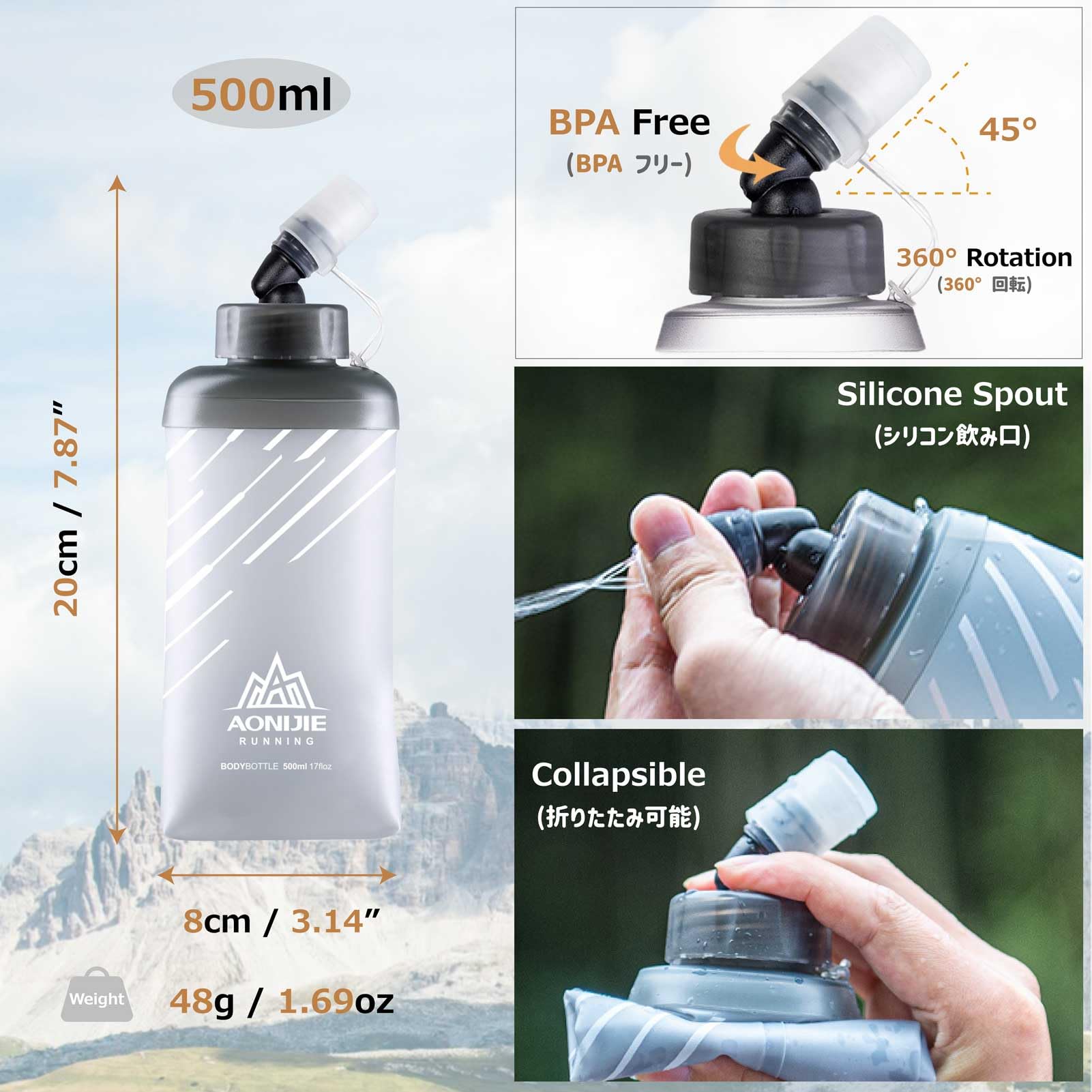 Tpu 500ml soft flask: Our water bottle is made of bpa-free tpu, no odor, no harmful substances. They are anti-leakage and foldable, providing adequate hydration during various sports and exercises