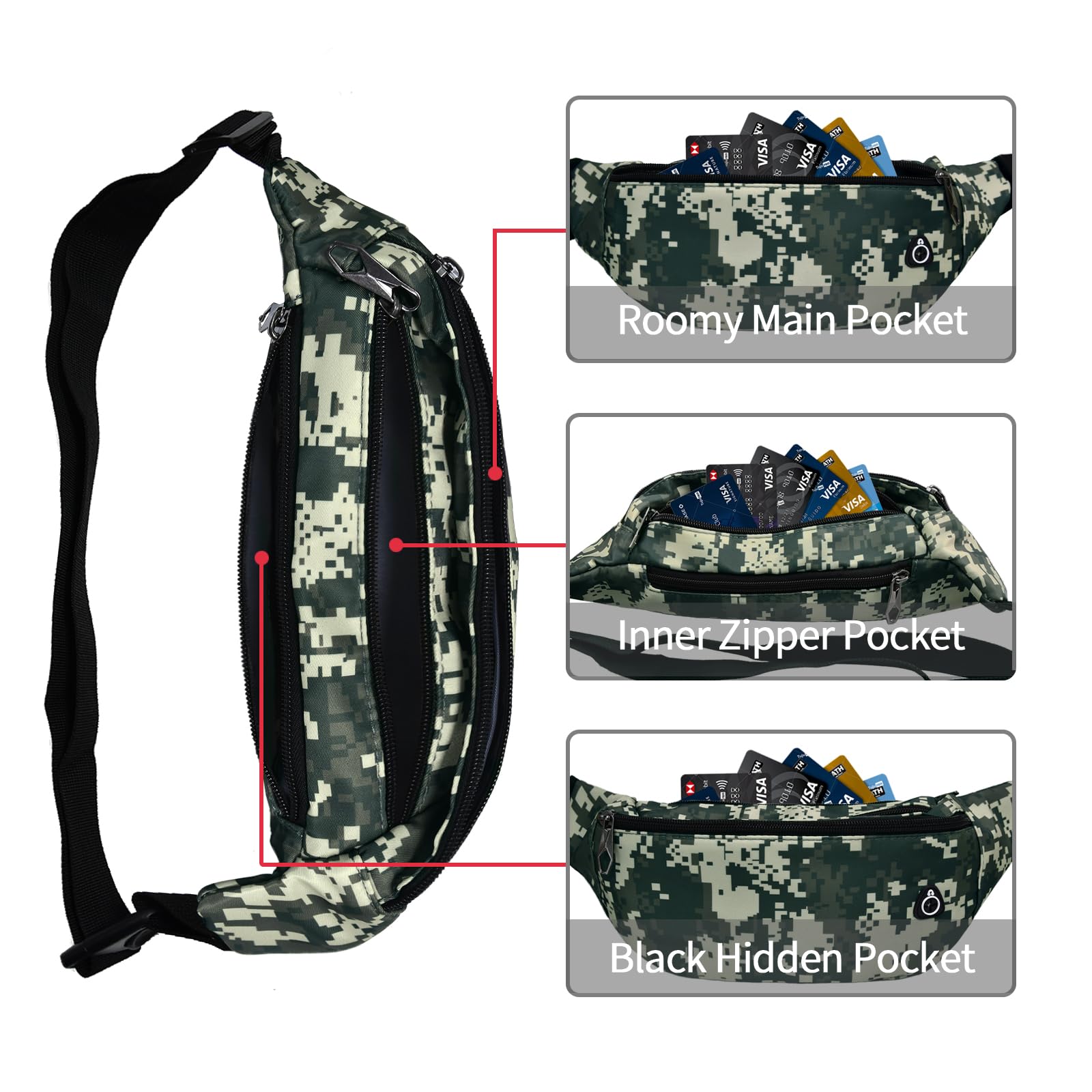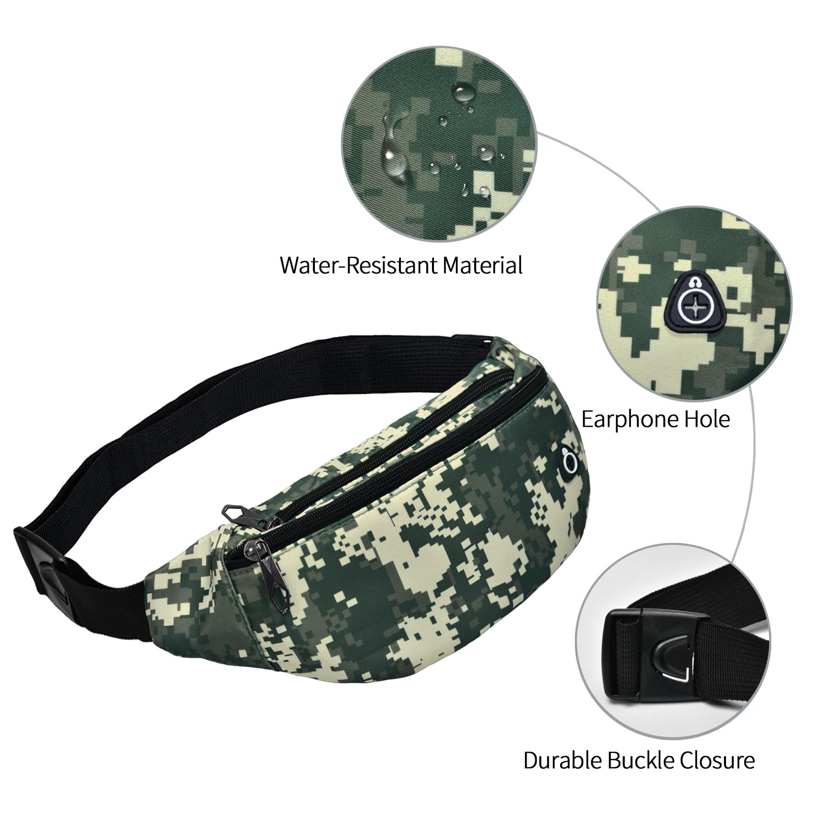 【DURABLE MATERIALS & LIGHT WEIGHT】 Our fanny pack for men and women are made of high quality material which is waterproof, durable and light-weight. Ensure a comfortable & long-lasting usage. Notice: Water resistant for drops or splashes, but do not take it into the water.