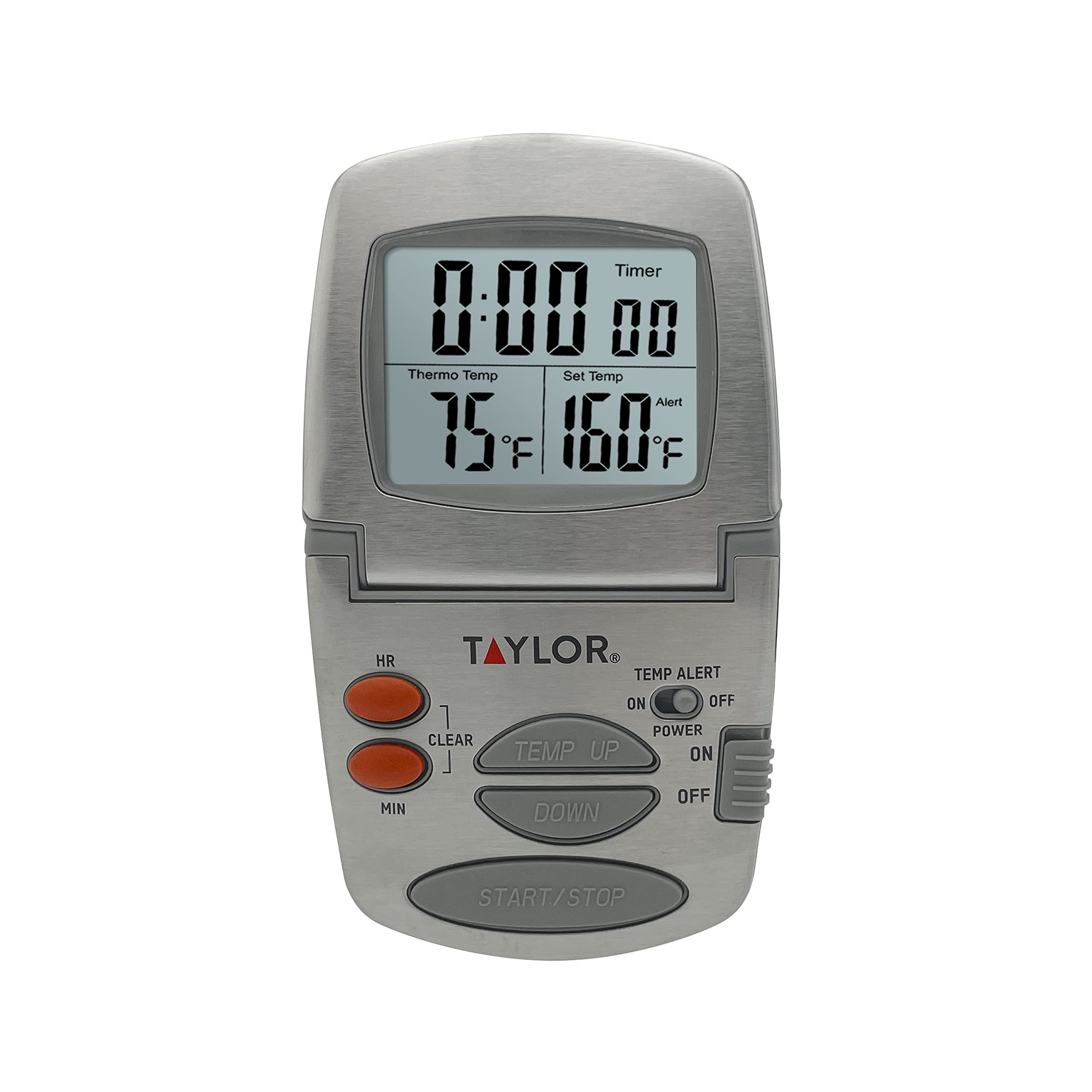 Cook your meals to perfection with the Taylor Programmable Digital Probe Thermometer. Ideal for meat, poultry, and BBQ, this thermometer features a stainless steel probe with a heat-resistant cord for use in ovens and grills. The programmable timer allows you to set your desired cooking temperature, alerting you with an alarm once the target is reached. The easy-to-read digital display shows current and set temperatures, while the fold-out stand and magnet provide flexible placement on counters or appliances. Whether you’re slow-roasting a turkey or searing a steak, this thermometer ensures precise results with minimal guesswork—making it an essential tool for home chefs and grilling pros.