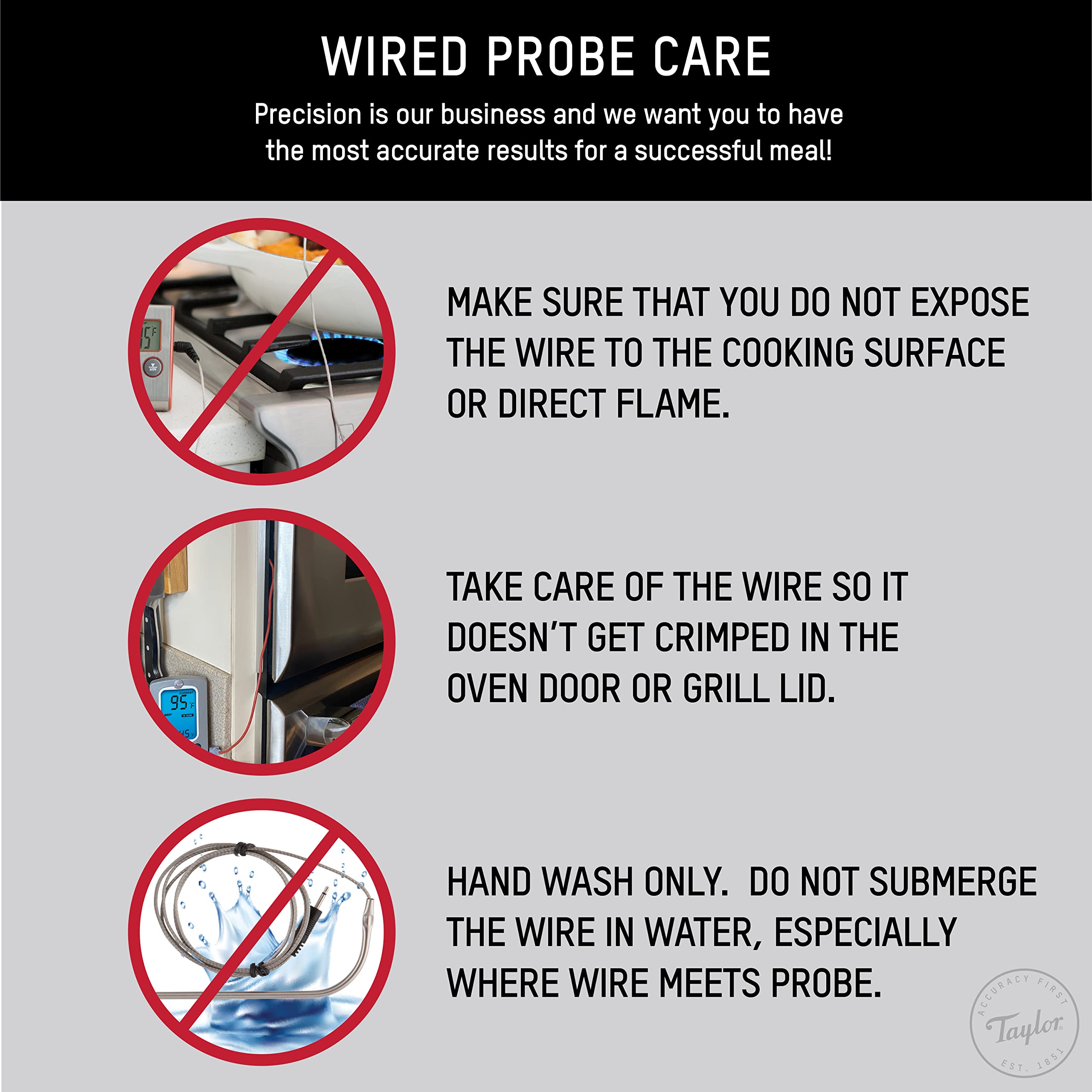 Monitor food without removing it from the oven: durable stainless steel probe with a 4-foot silicone cord allows monitoring of food inside oven without opening the door.