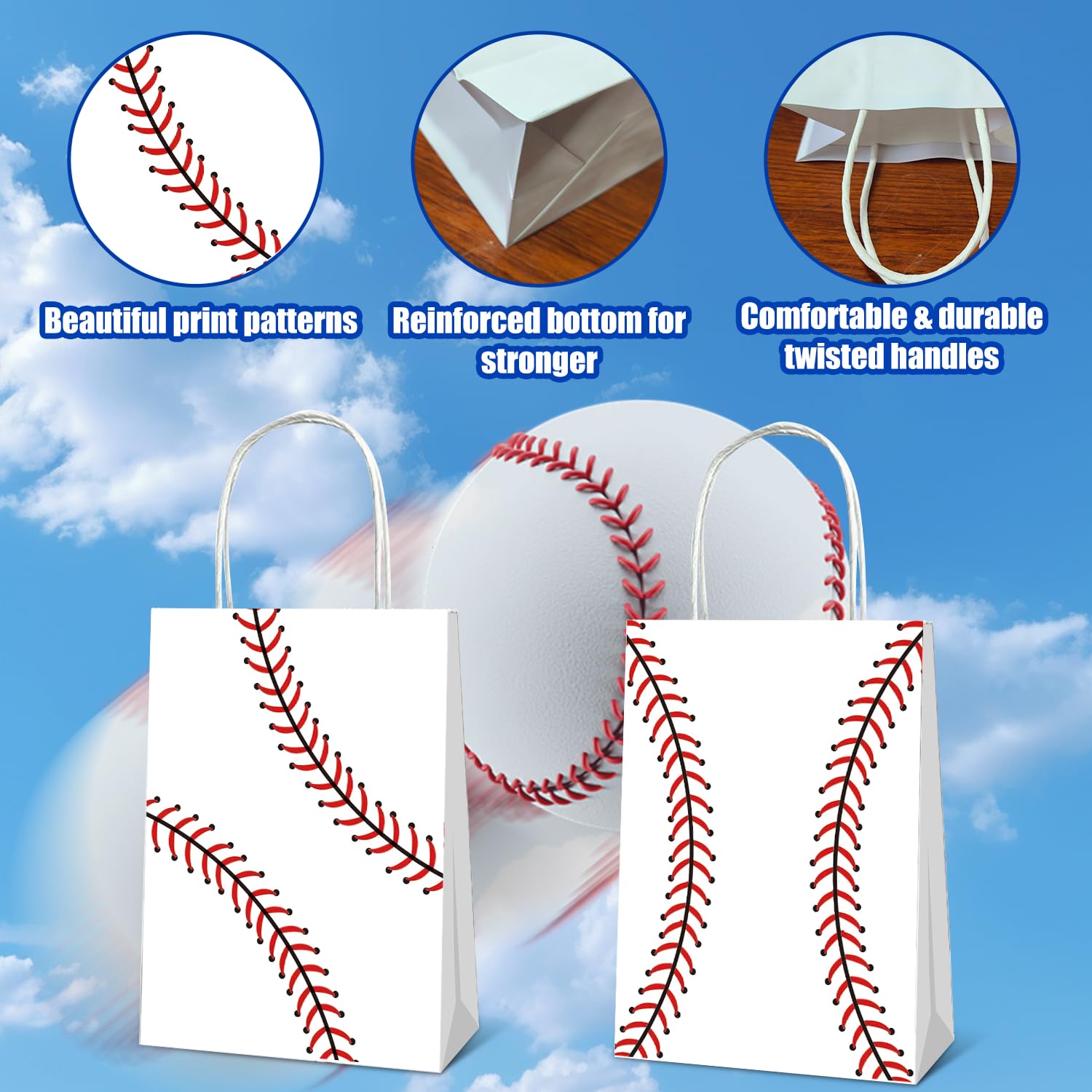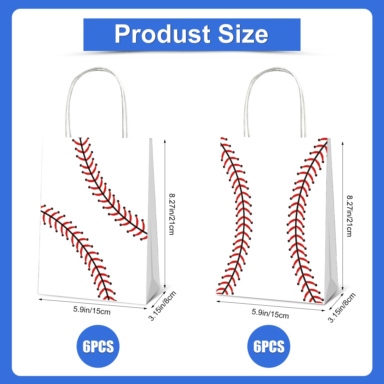Perfect Size: Our baseball goodie bag are 8.26 x 5.9 x 3.15 inches/21 x 15 x 8cm in size, 12 pack. Perfect for baseball party supplies party gift bags to hold more of various treats, biscuits, small items carrie