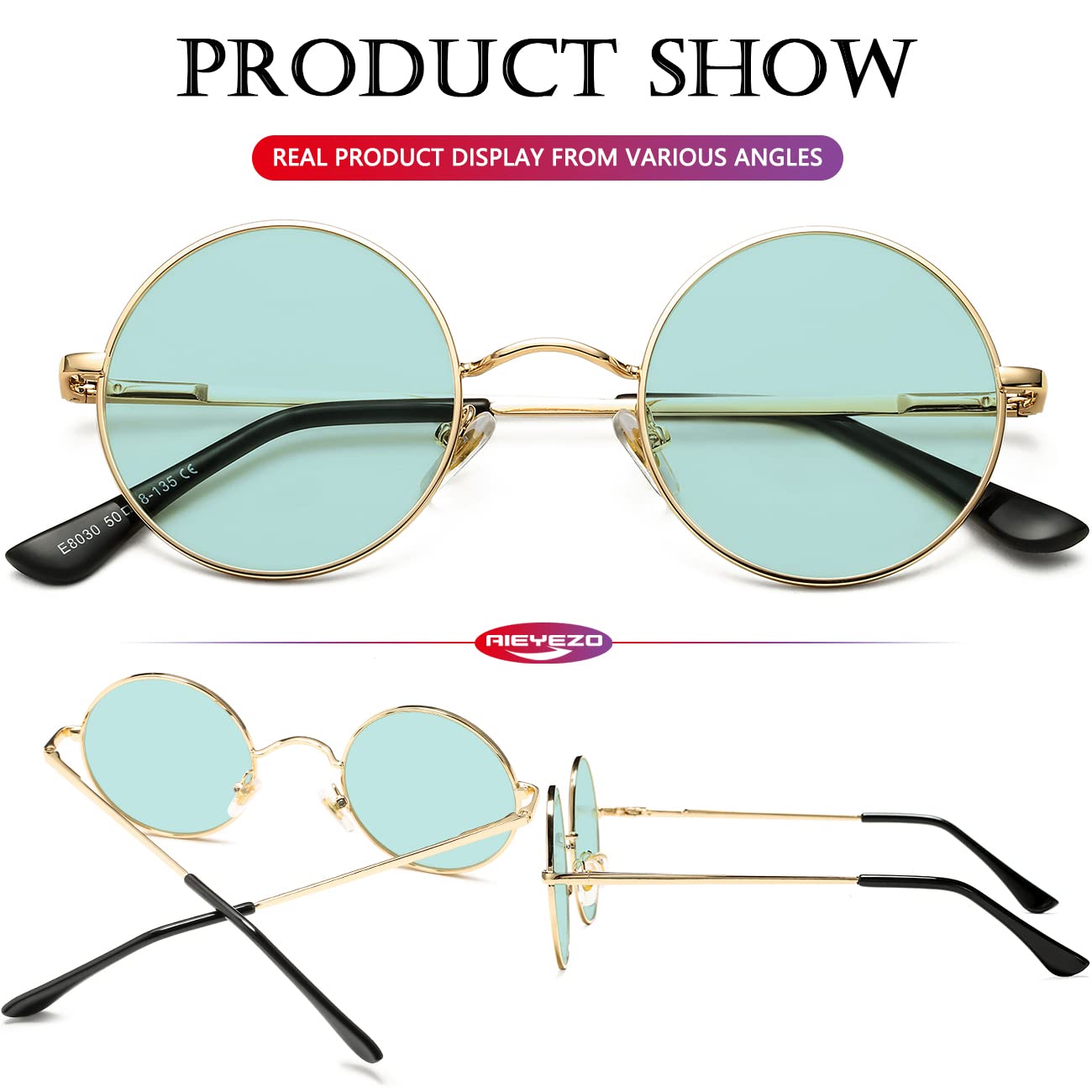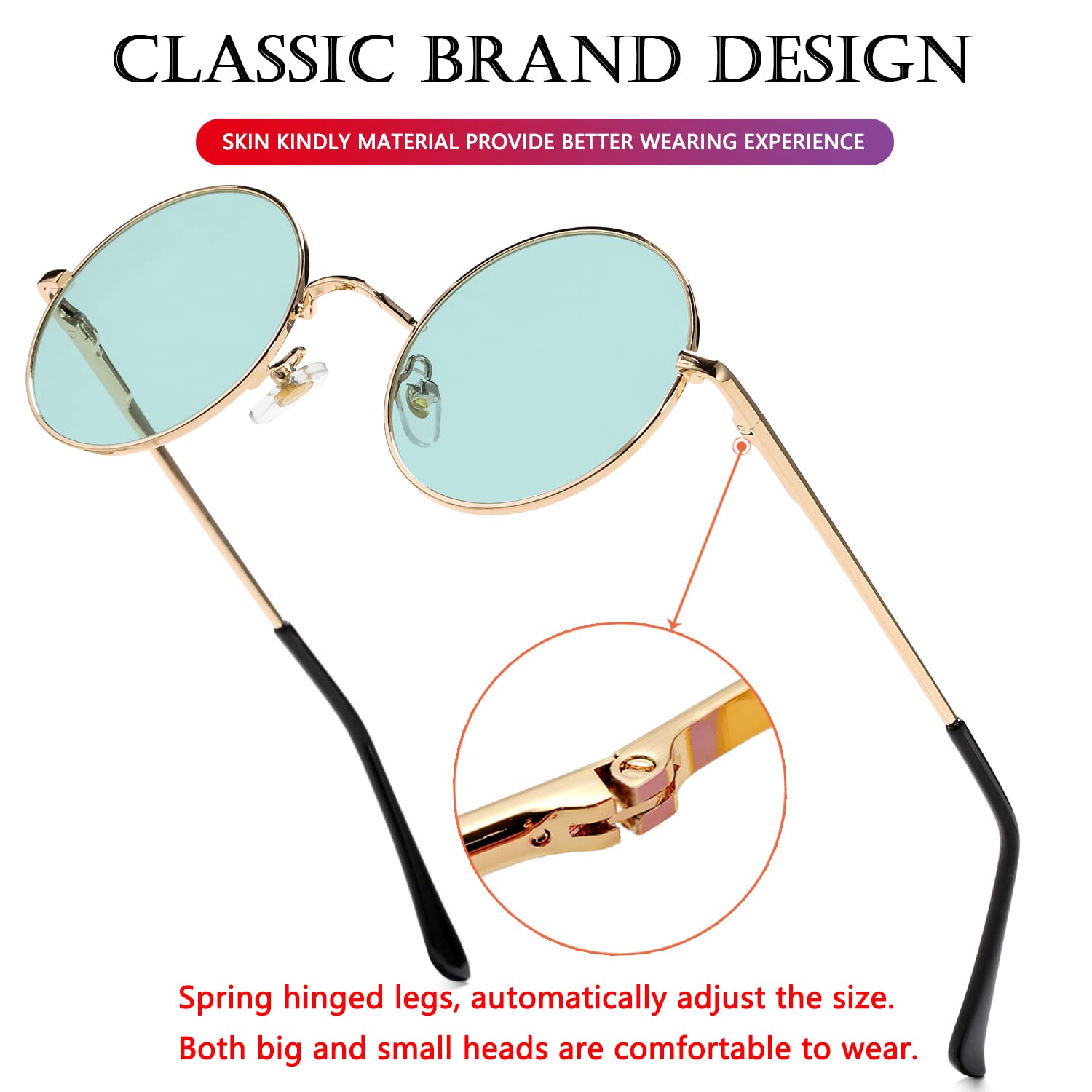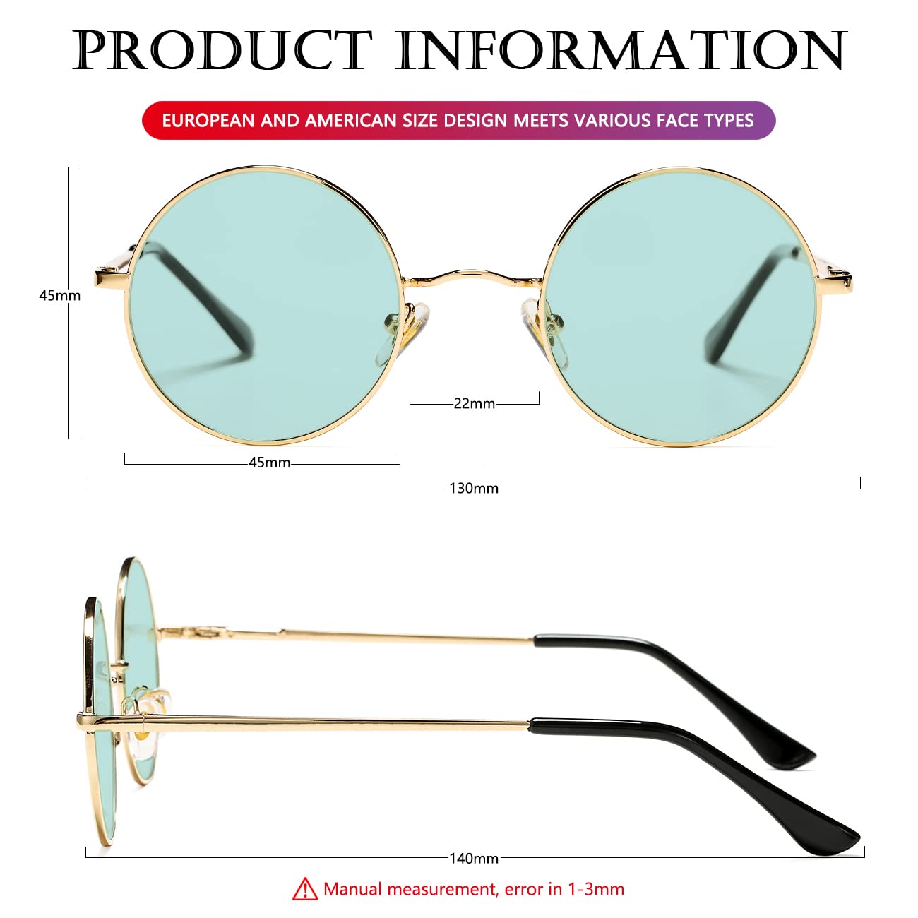VINTAGE ROUND METAL FRAME ►Ergonomic design frame, a curved brow bar, reinforced metal hinge, adjustable nose pads, durable metal flexible spring hinges temples, classic design make these small round sunglasses for men and women more comfortable and durable while you are wearing.