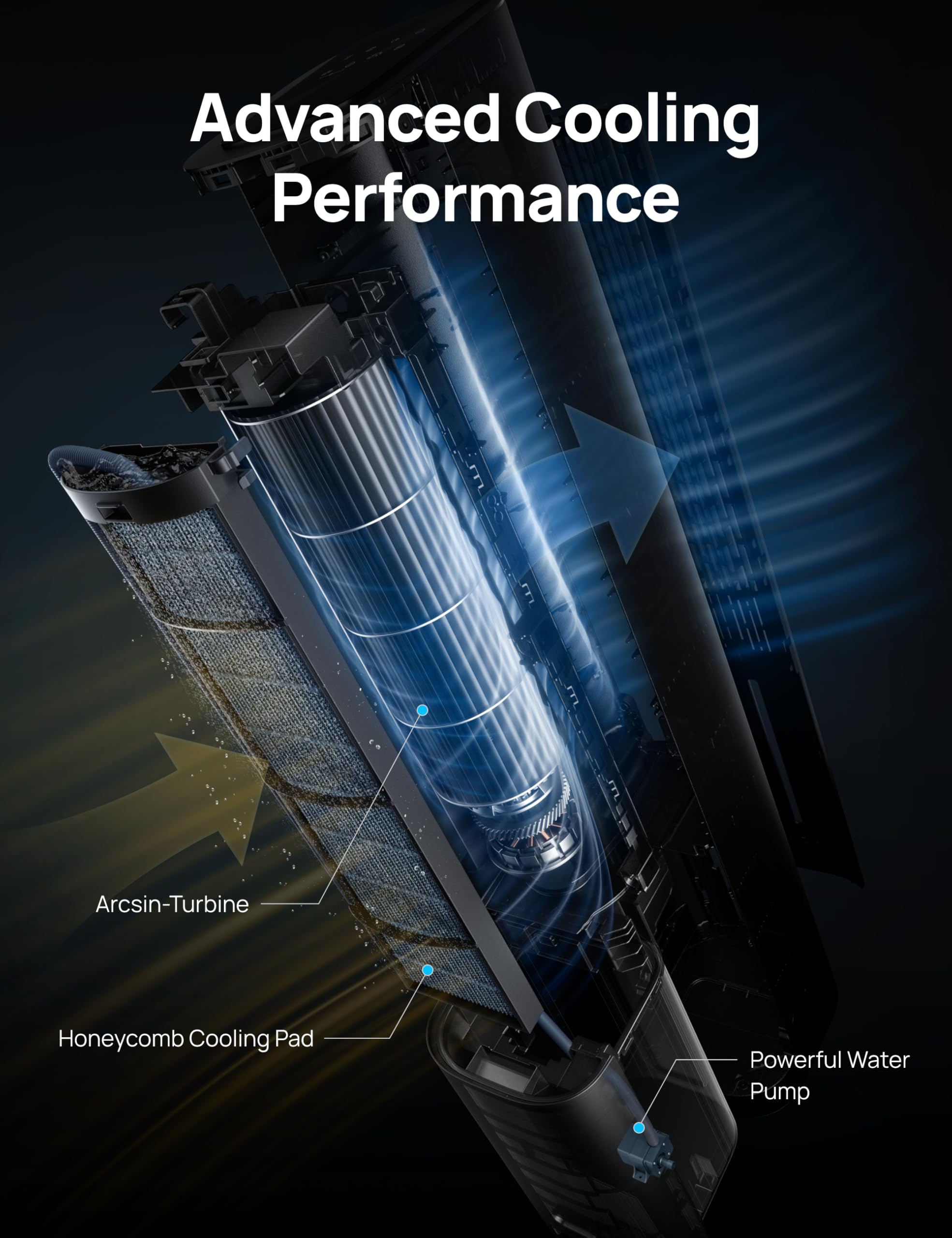 Ultimate Cooling Performance: With wind speeds up to 25 ft/s, a 22% higher evaporation rate, and a 6L water tank, this fan provides rapid heat relief and all-night comfort