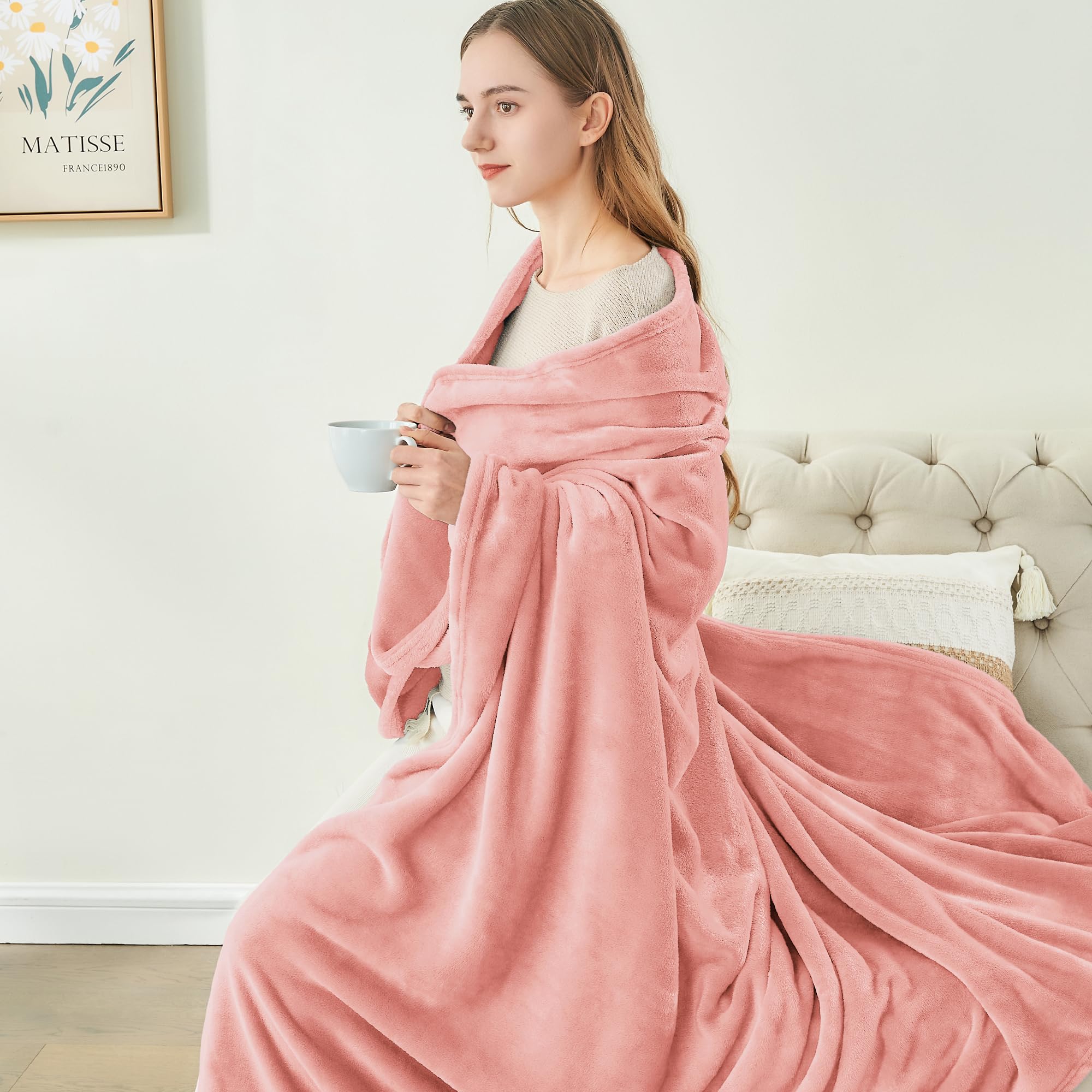 DOUBLE-SIDE FLUFFY FLEECE BLANKET: The flannel fleece fabric we choose is originally made from 100% polyester and brushed to create super softness on both sides, the throw is designed to be solid but elegant.
