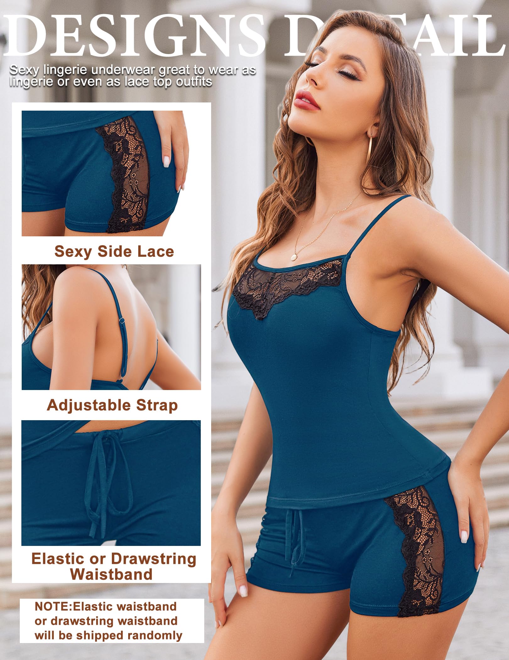 Cami pajama set comes with cami tank top and bottom. Lace cami top featuring scoop neckline with lace panels, adjustable shoulder straps, simple and stylish, shows off your body curves in nice coverage way