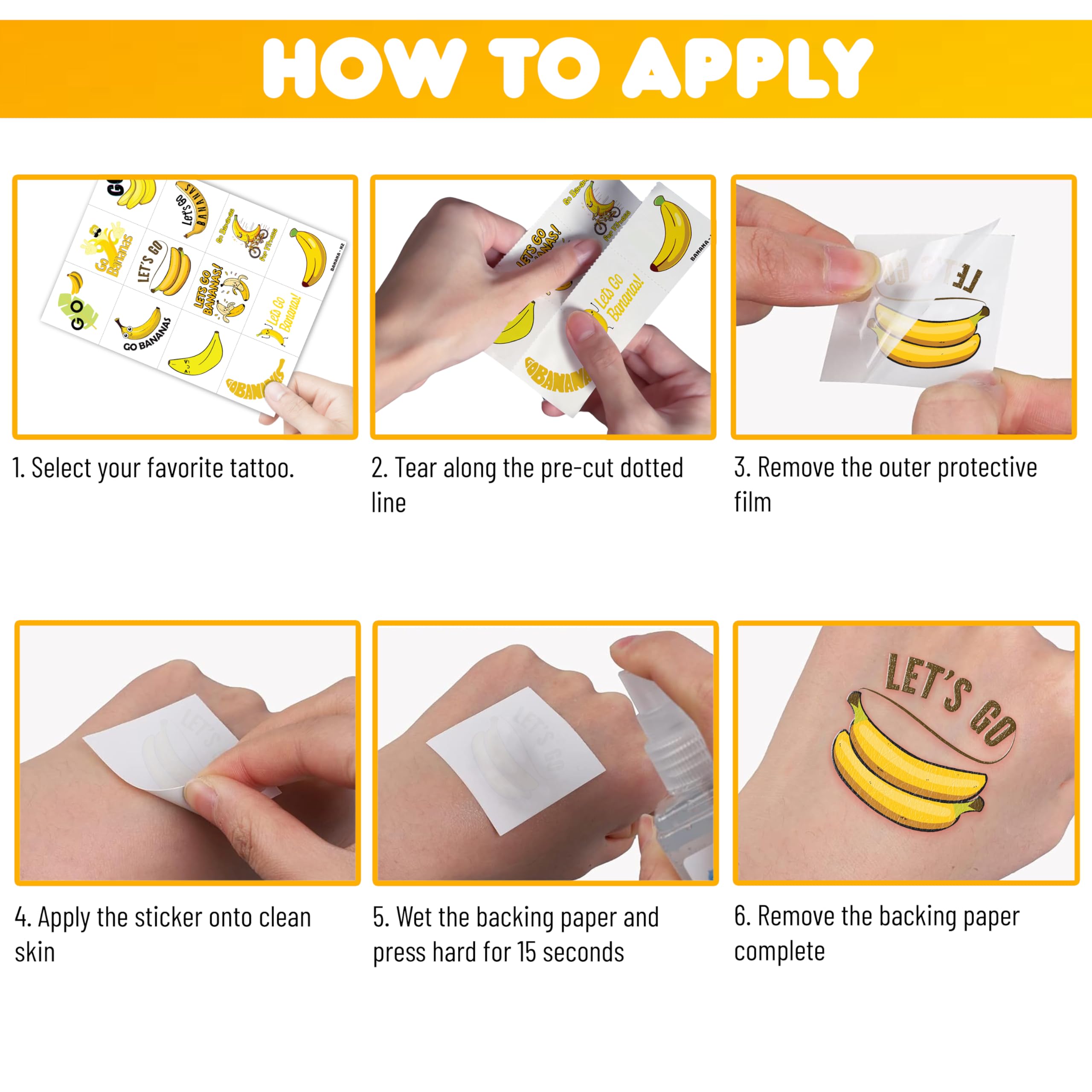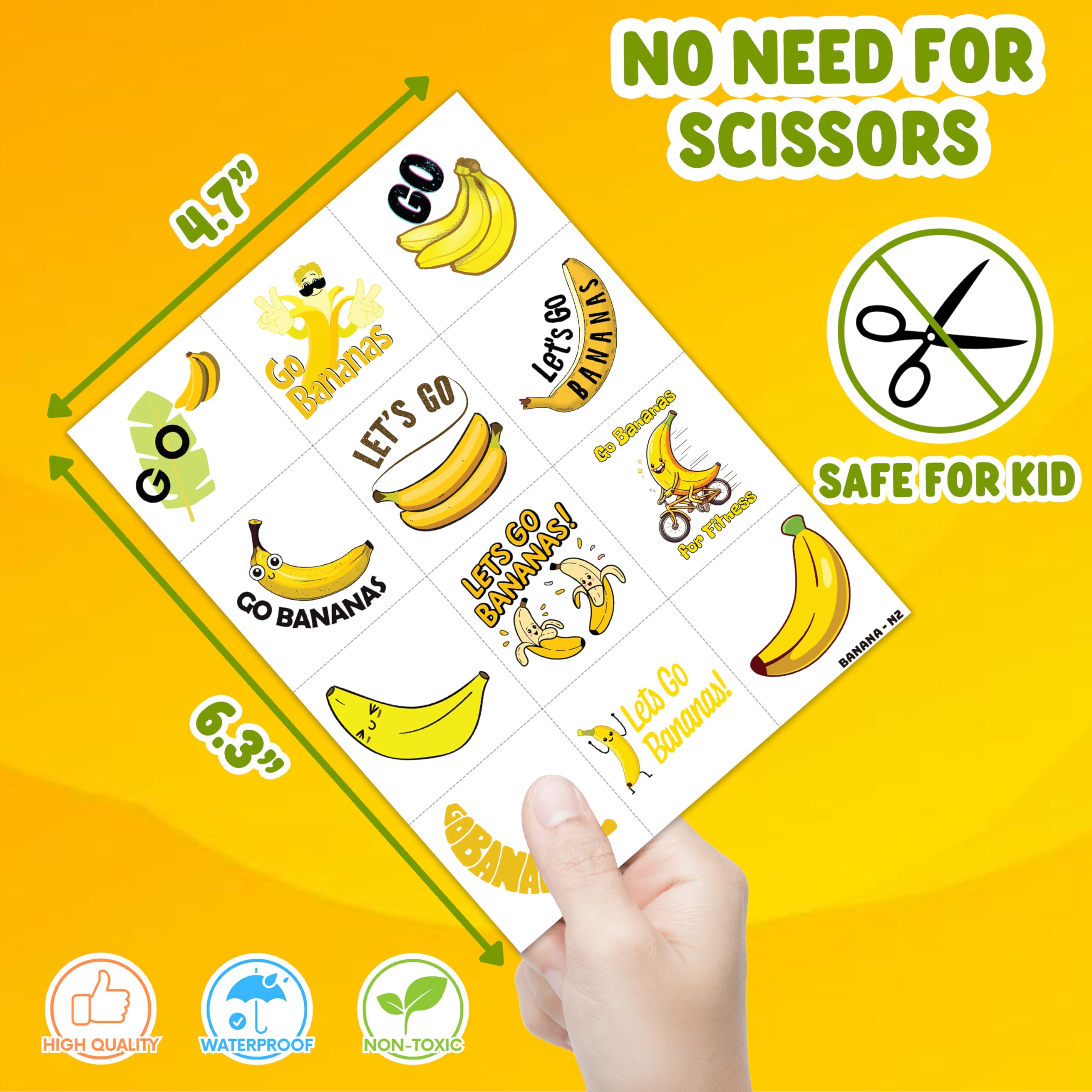 [PERFECT FOR GAME DAYS & PARTIES] The ultimate accessory for yellow-themed events! Whether you are cheering for your favorite baseball team at the stadium, hosting a tropical fruit birthday party, or planning a school carnival, baseball game, these temporary tattoos will make you stand out from the crowd.