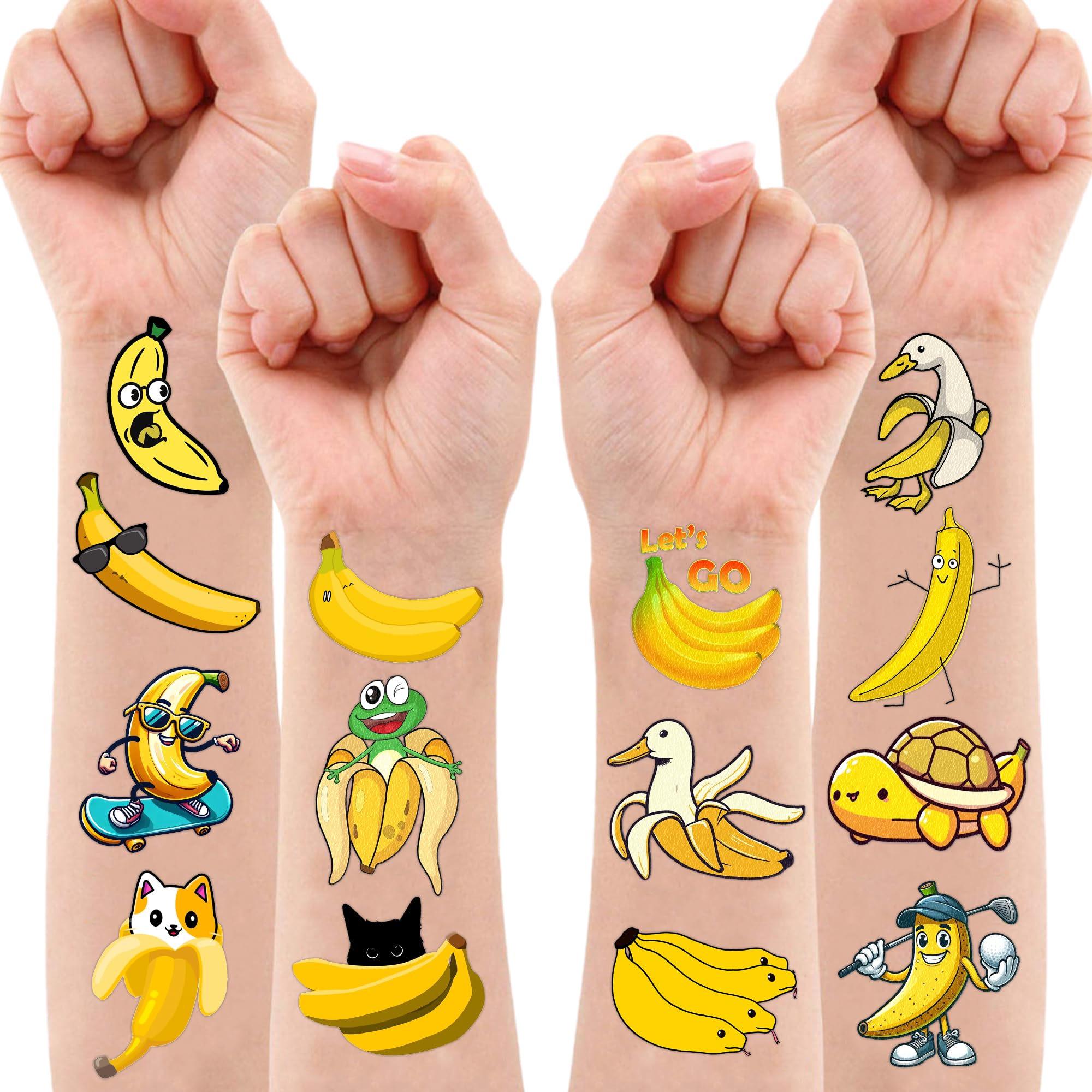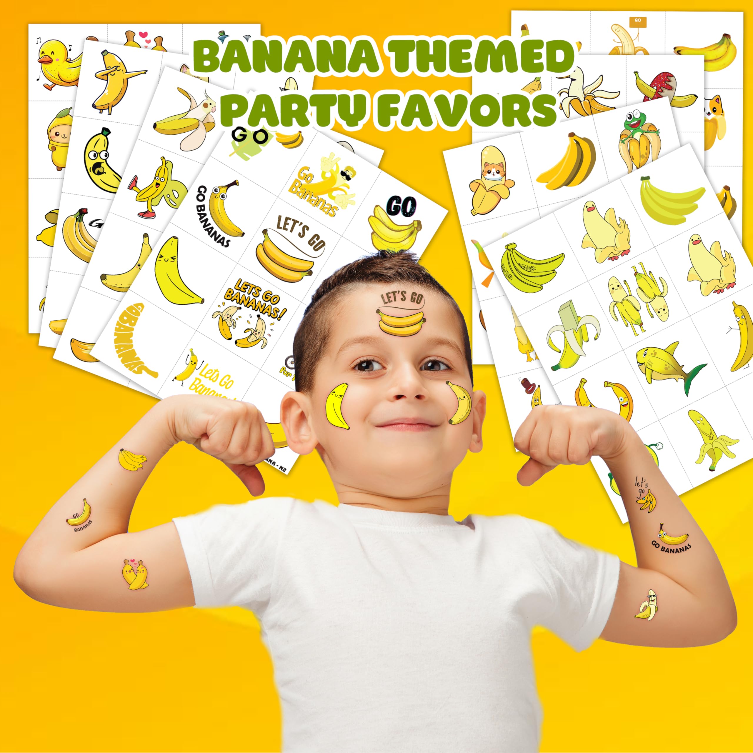 Banana Temporary Tattoos 8 Sheets 96PCS - Yellow Fruit Face Stickers for Kids & Adults, Game Day Sports Fan Accessories, Party Favors Decorations for Boys Girls School Carnival Prizes