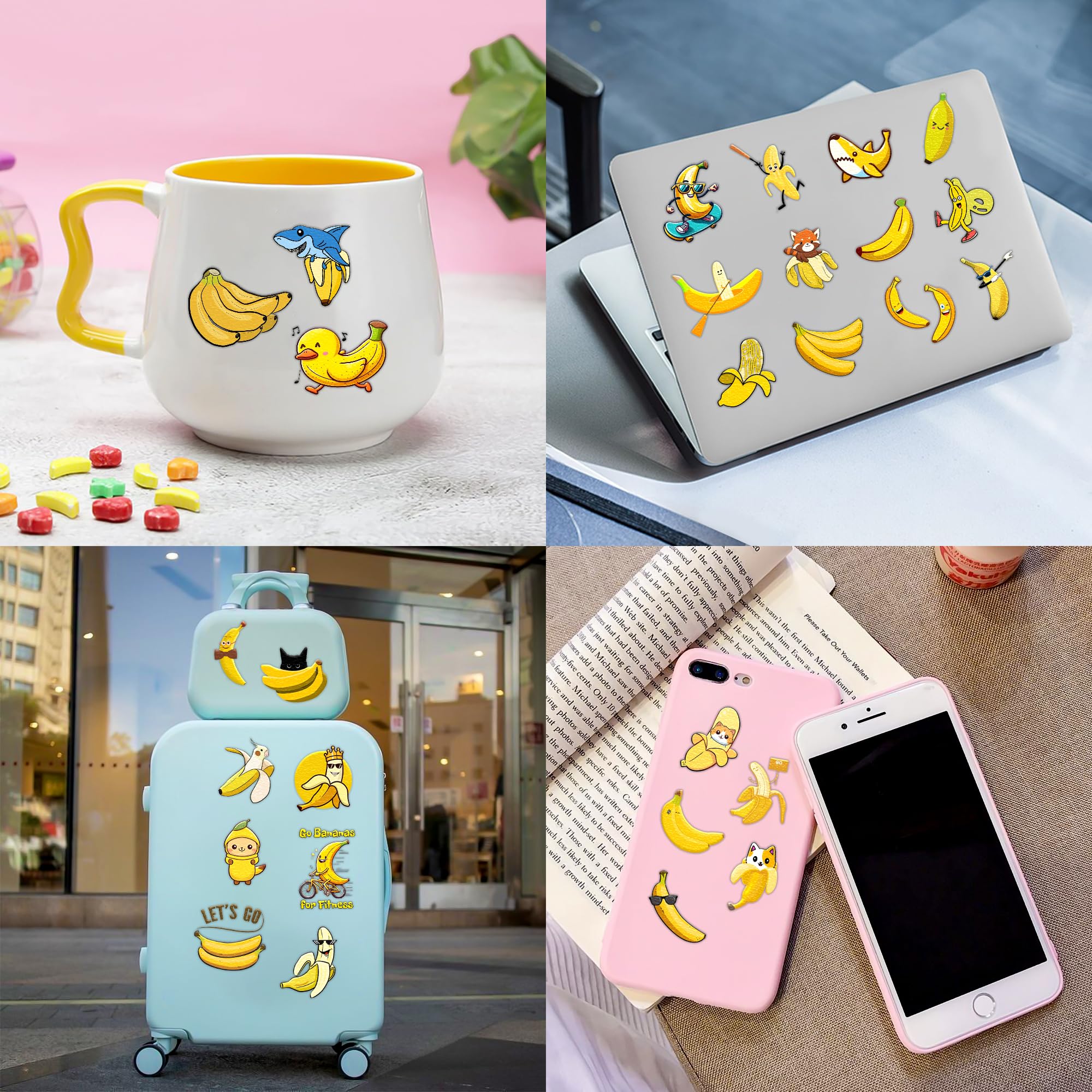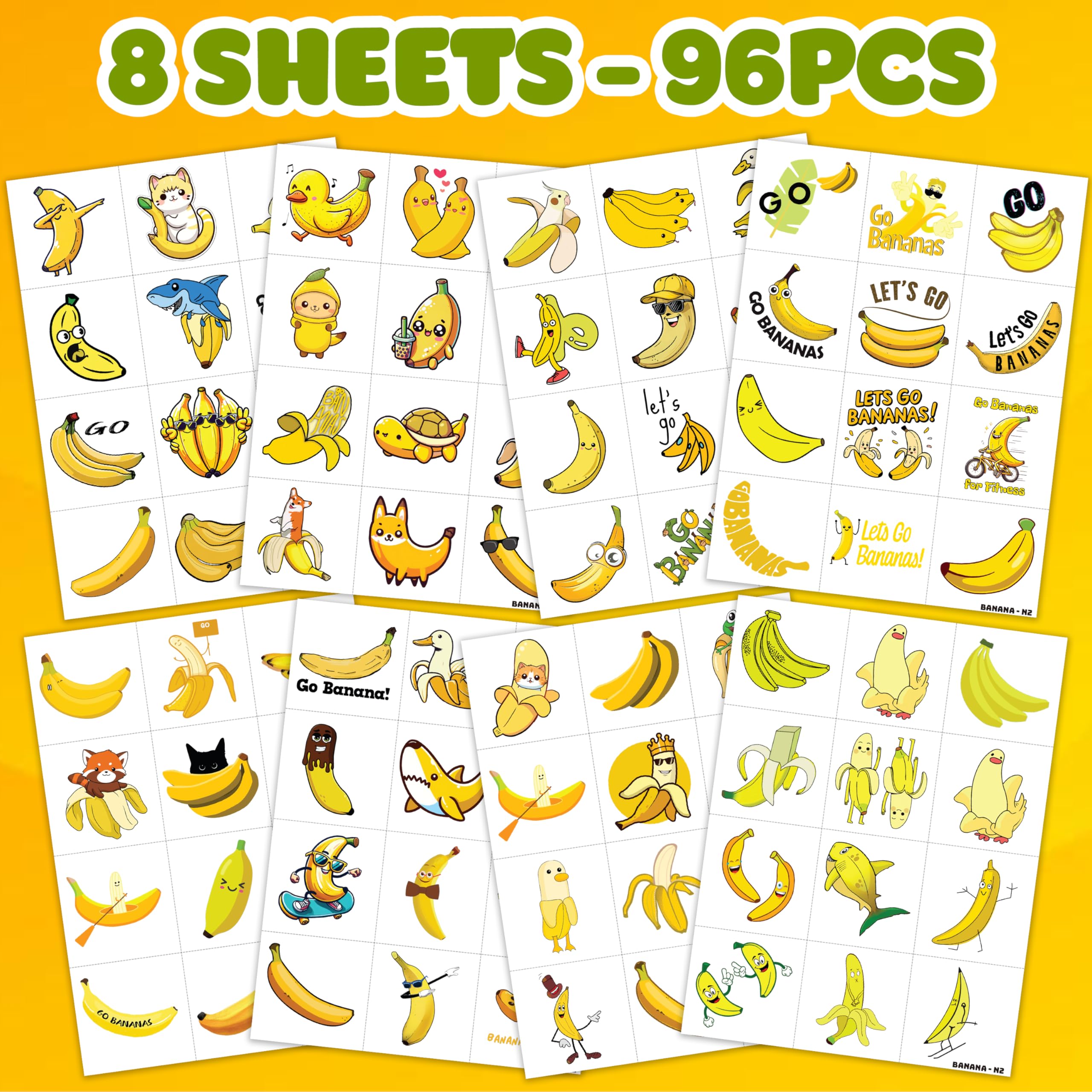 [96PCS MASSIVE VALUE PACK] Includes 8 pre-cut sheets (4.7" x 6.3") featuring diverse, cute yellow banana designs. Sufficient quantity to share with friends, family, and teammates to create unforgettable memories and take unique photos together.