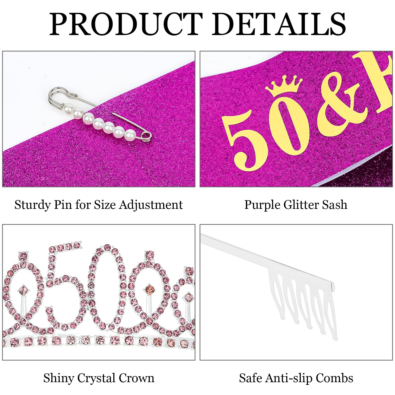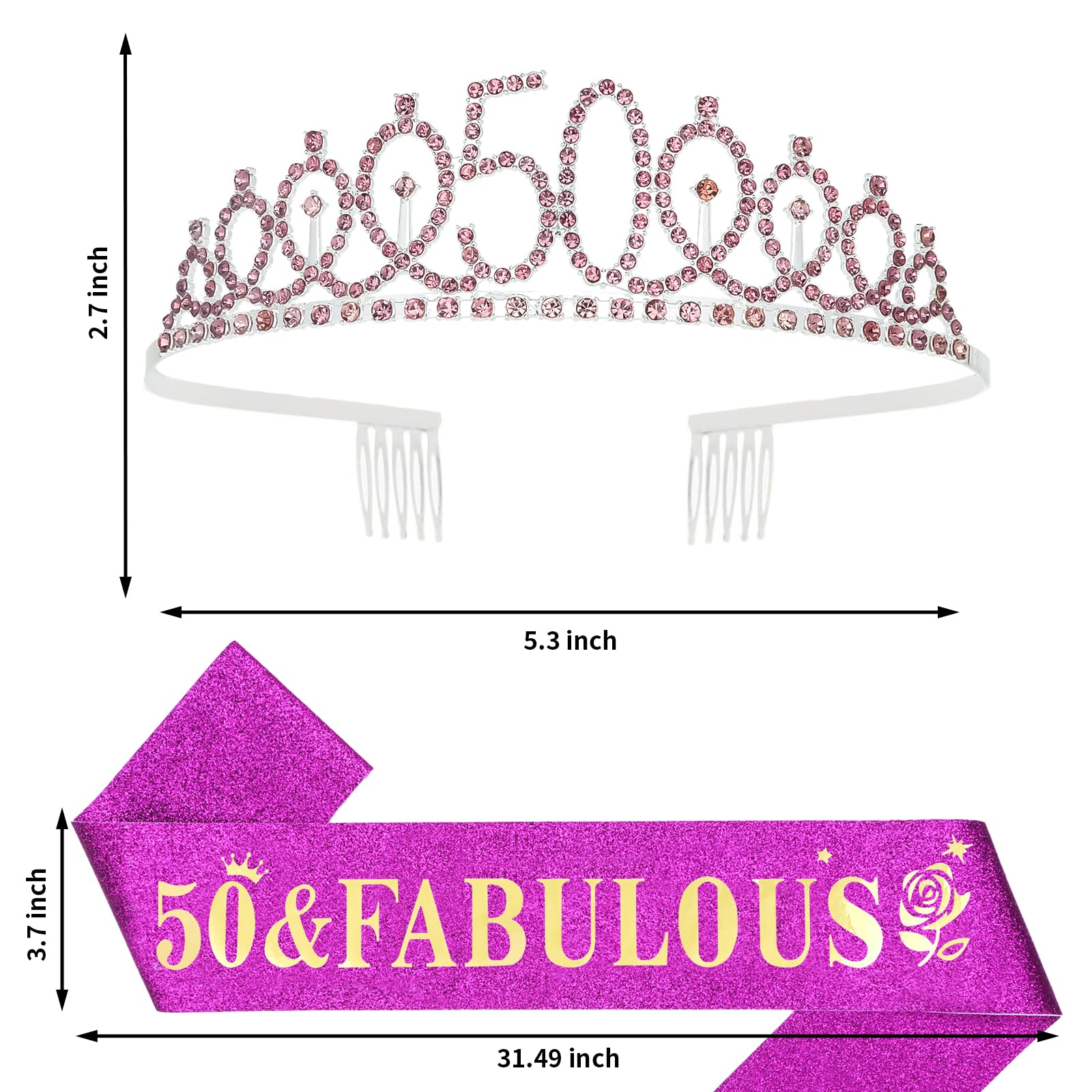 【Package Included】: The package contains "50 & Fabulous" birthday sash and 50th crown and a pearl pin. It's a great birthday gift for you. You will be like a queen in your birthday celebration.