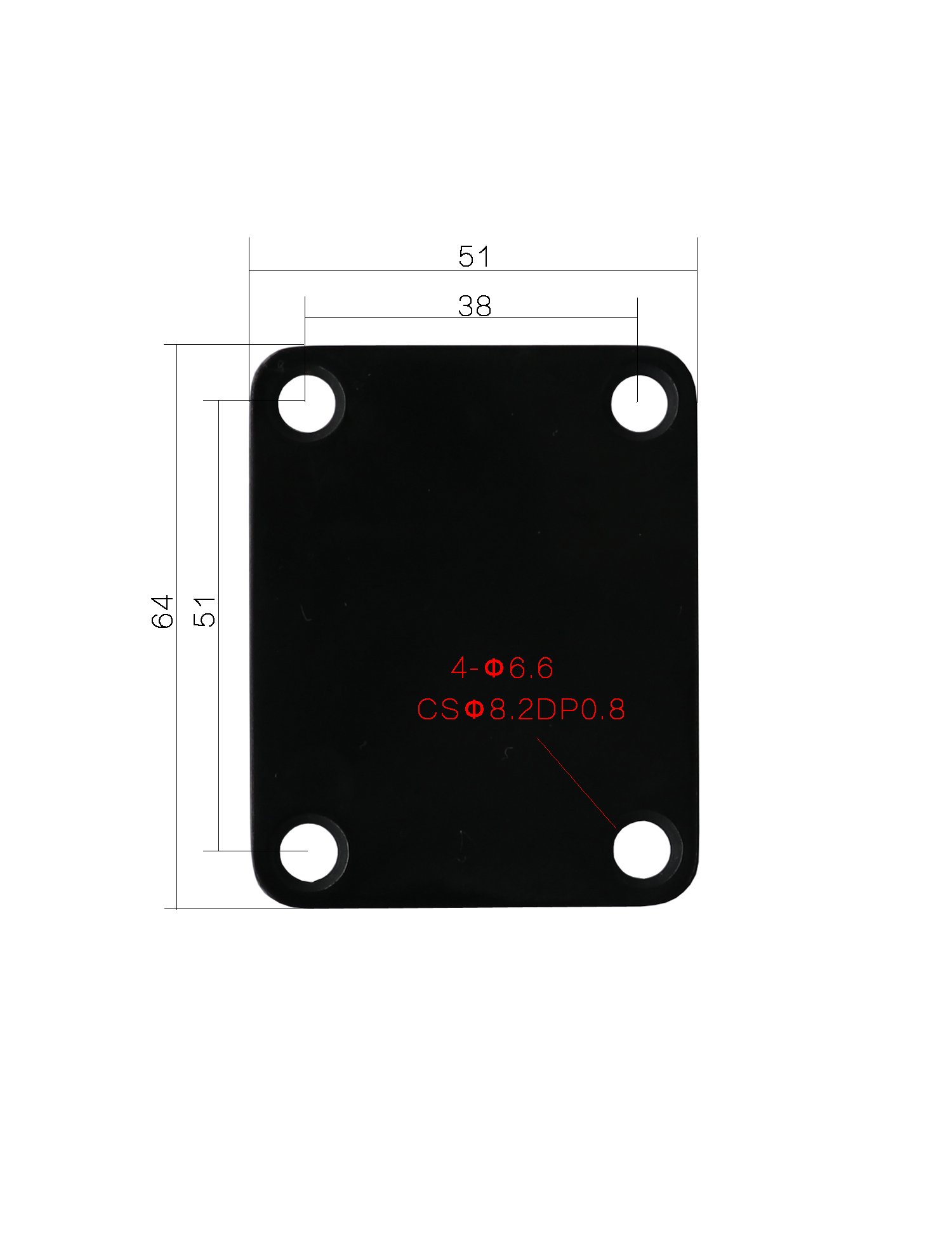 The metal neck joint plate size approx. (L x W): 64mm x 51mm (2.5inch x 2inch).