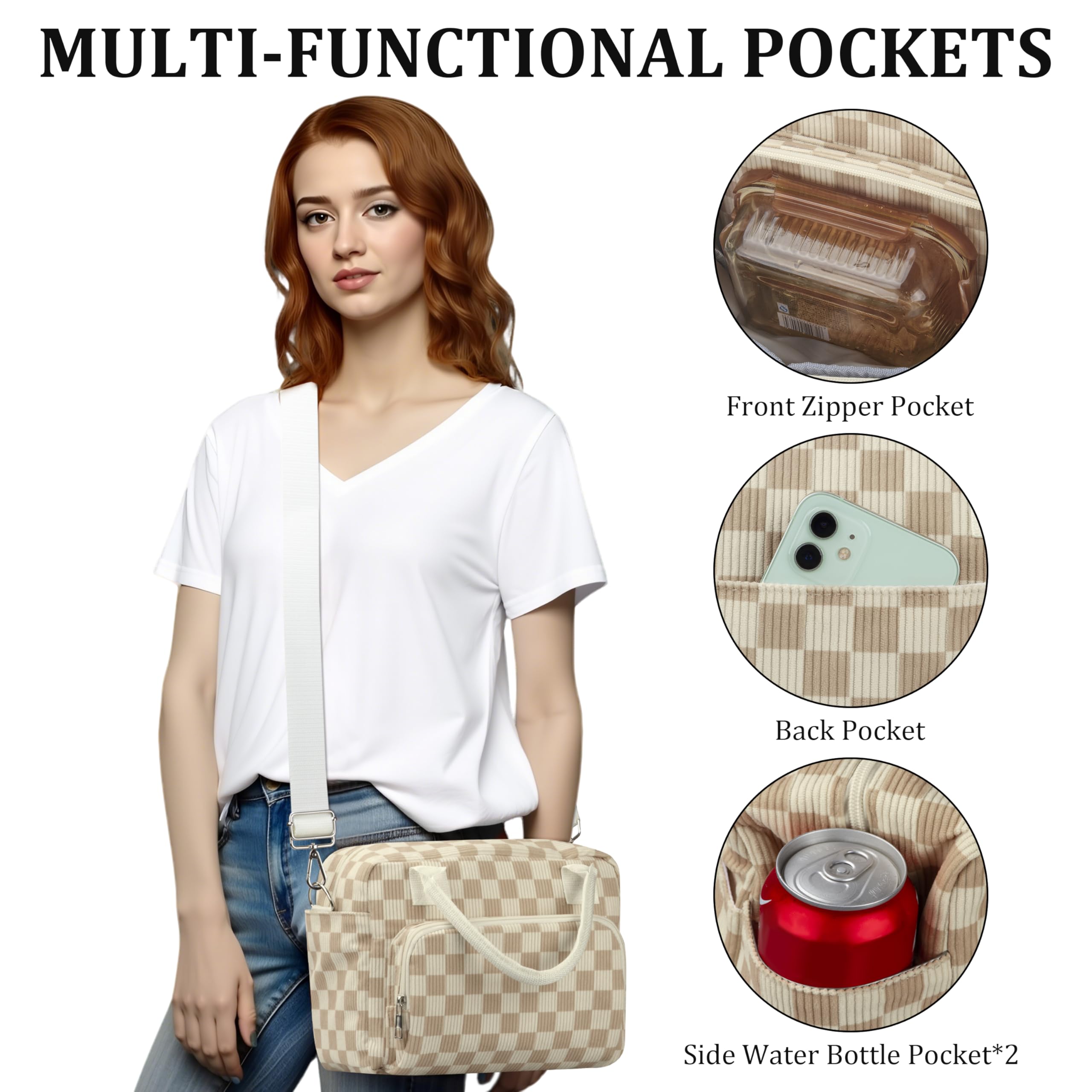 Adjustable Straps: For added comfort and versatility, This reusable lunch box features a durable handle and a detachable and adjustable shoulder strap (23"-48"), enabling you to carry it as a handbag, shoulder bag, or even a crossbody bag, adapting to your preferred carrying style