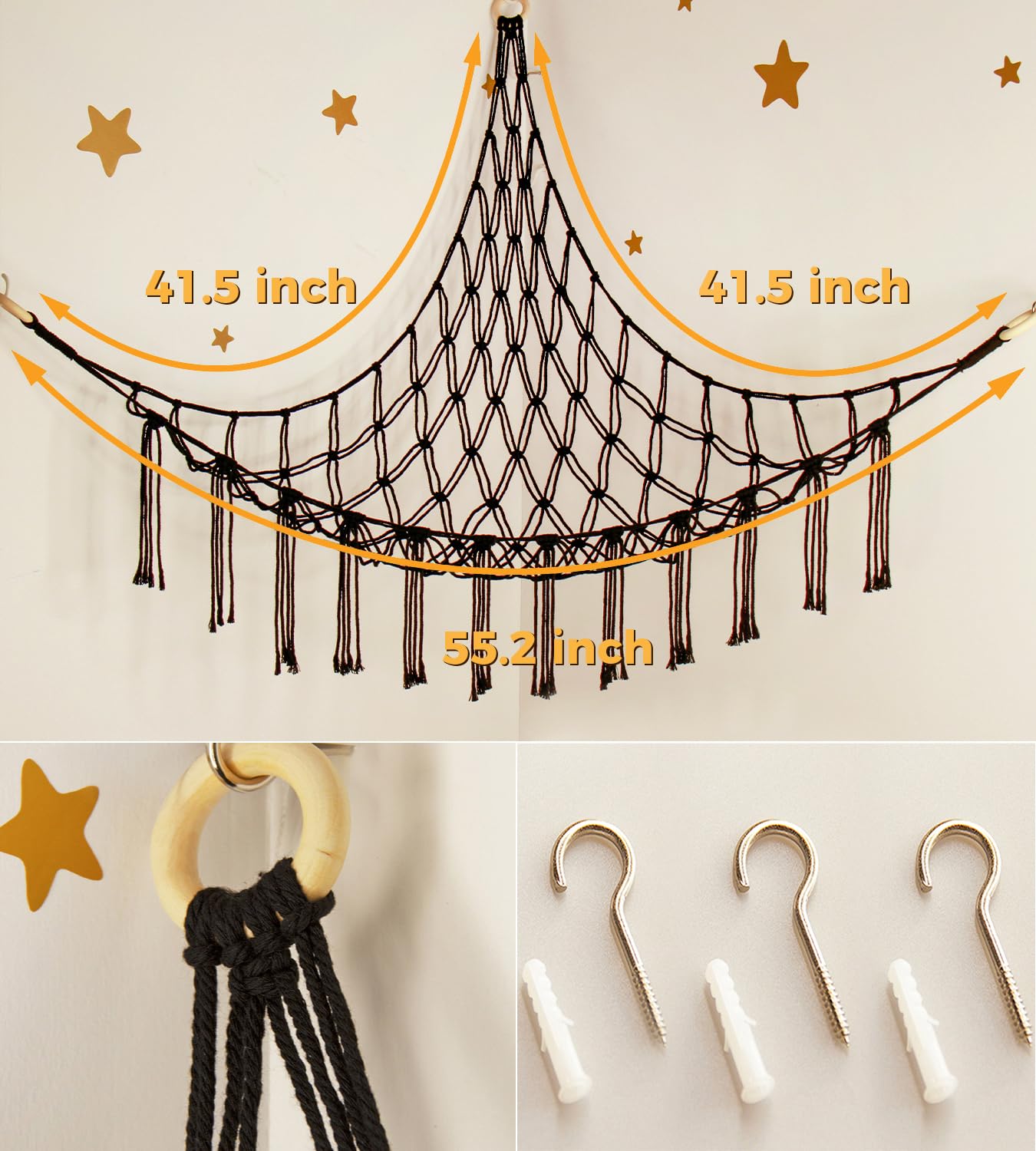 Practical yet Pretty Cute - Unlike the plain toy net, this handmade toy hammock net for stuffed animals not only keeps the plushies organized well, but also looks super cute as a beautiful room decor piece with a bohemian vibe when hung up.